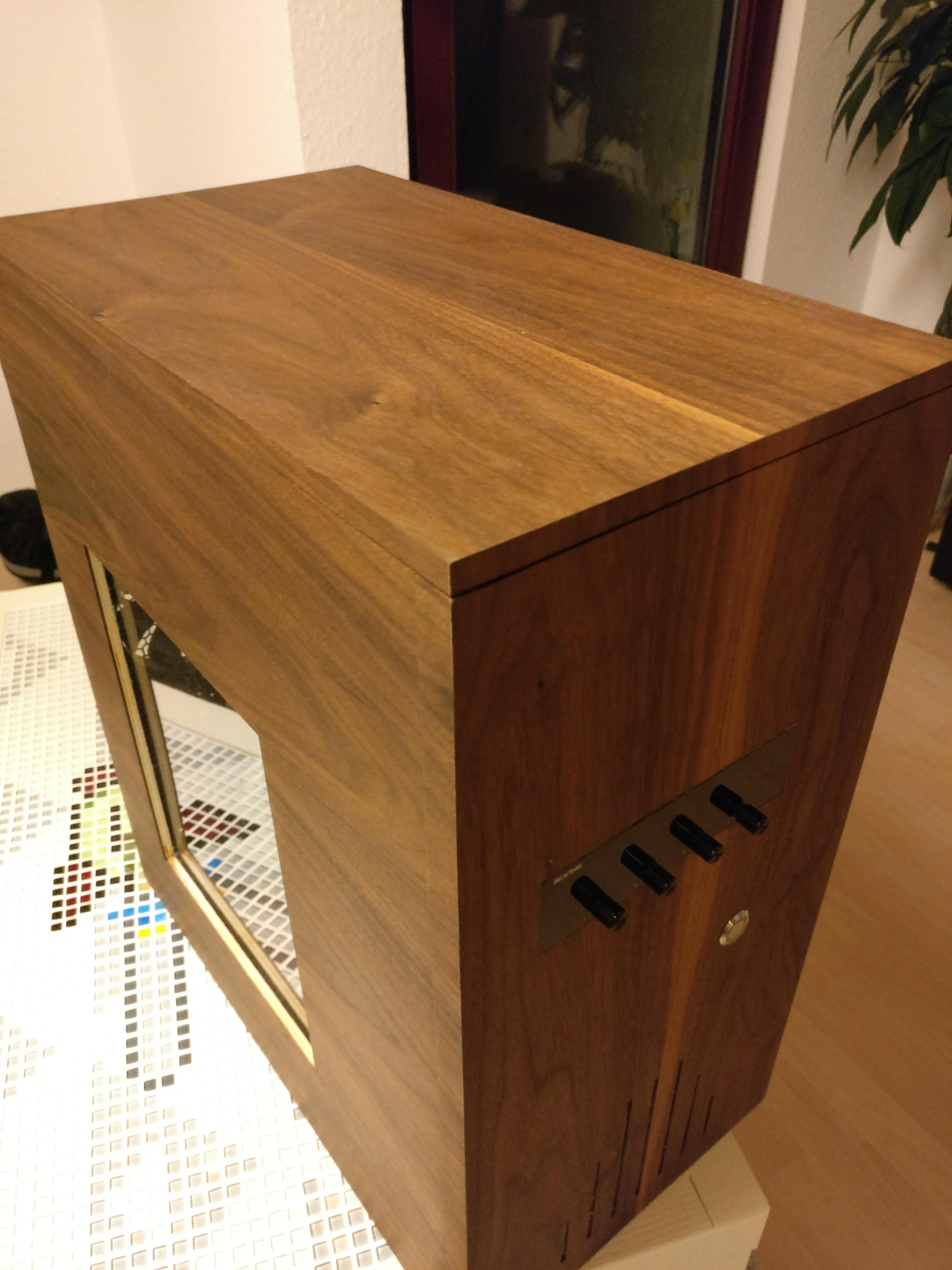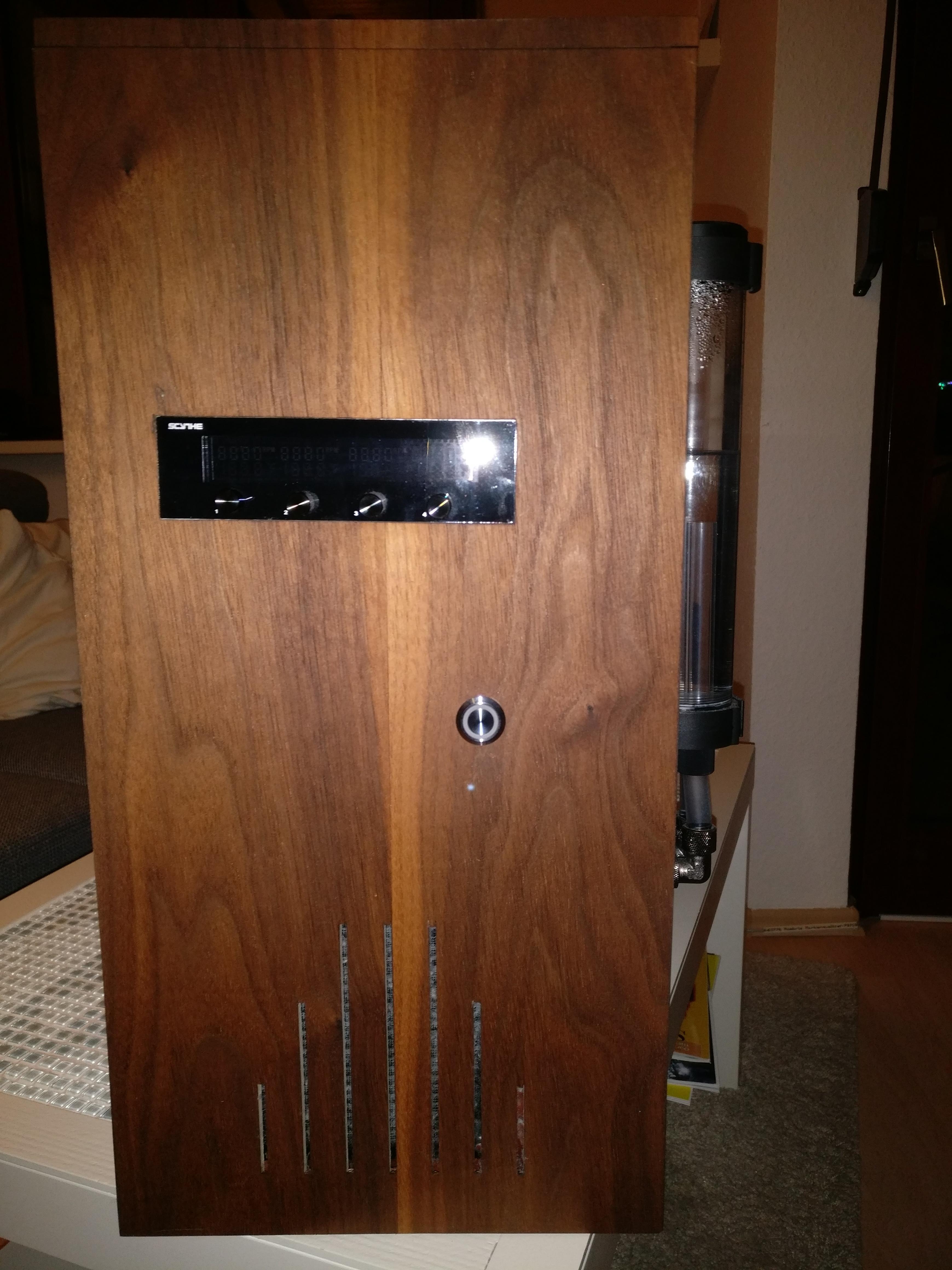 Der irrsinnige Versuch ein altes Chieftec Case mit Holz zu verkleiden und eine WaKü reinzuzimmern. Die Bilder sind vor dem Zerlegen und Umzug mein neues Case entstanden, die nicht mehr ganz so passenden Fugen also nicht beachten.