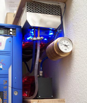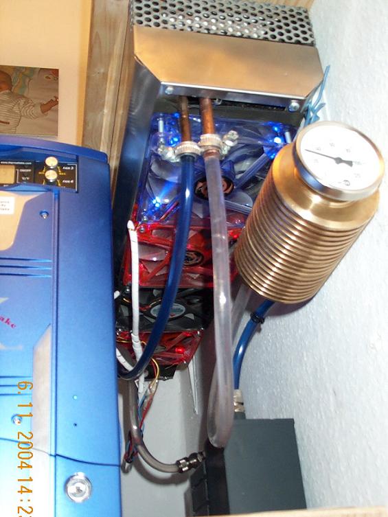 Der Radi ist 650X150mm also der Kühlt wie sau mit sehr feinen Lamellen aus einer Klimaanlage, Lüfter sind mit Gummi entkoppelt . Eheim Mod an der Schaufel so das die Pumpe auch lautlos ist.