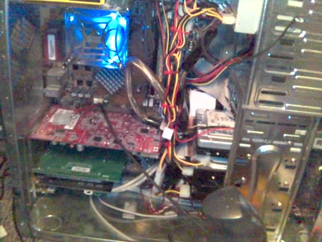 . Allerdings ist dieses gerade in Einzelteile zerlegt. Zur Sicherheit wegen den Kontakten (Mainborad, Graka, NT) habe ich das komplette System (ausser die HDD) auf kleine Gummifüße gestellt.
