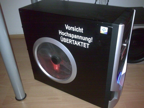 Schlüsselstarter, 2 Gravuren, selbstgemilchtes Plexi in der Front und als Kabelverkleidung neben dem NT, Wakü, Festplatten in einer "Ich bin leise Box", NT MOD usw wurde alles gemacht.