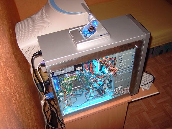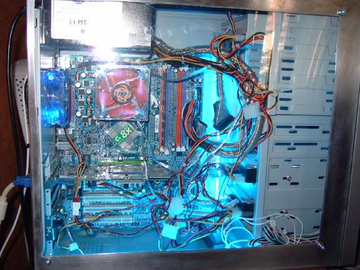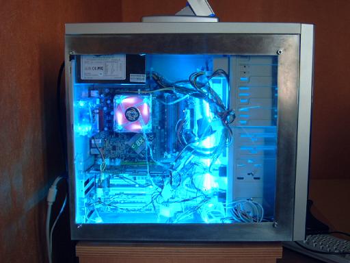 hier mal mein 1. mod alles selber gemacht. ist aber noch nicht fertig. werde noch ein lüfter direkt unten rechts am plexiglas dranne machen. nur noch ne wasserkühlung und fertig ist mein meisterwerk achso ja kabelsalat aber weiss beim besten willen nicht wie ich das läsen soll. kein platz mehr hat jemand ne idee. habe schon versucht irrgend wie platzsparender zusammen zu binden ja hat schon was gebracht aber so die krönung ist es immer noch nicht