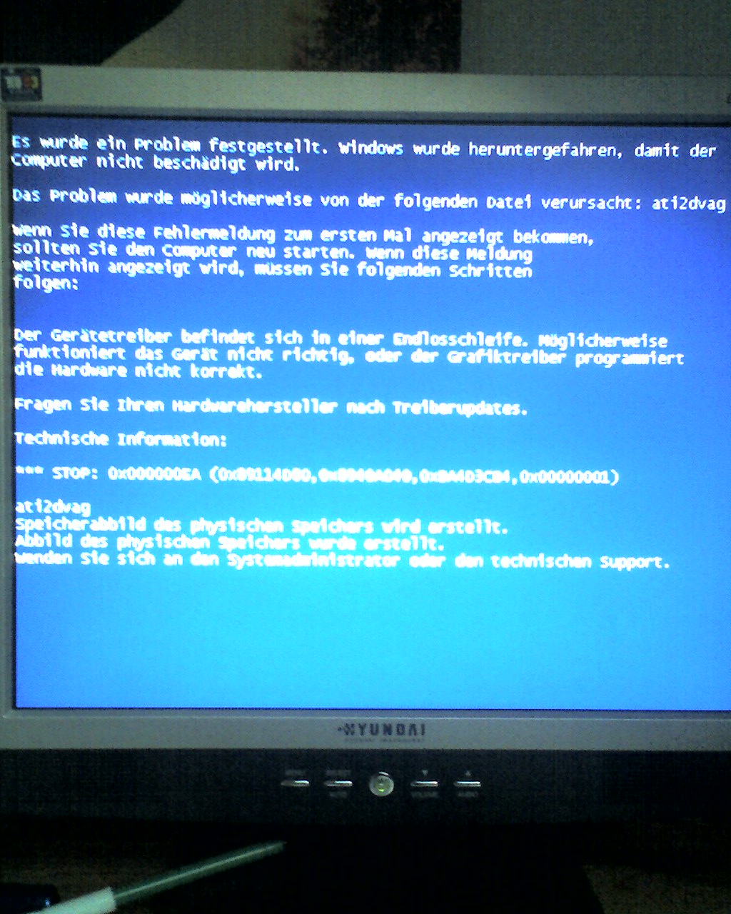 - es kommt ein Bluscreen mit der Meldung: Es wurde ein Problem mit der Datei Ati2dvag festgestellt...