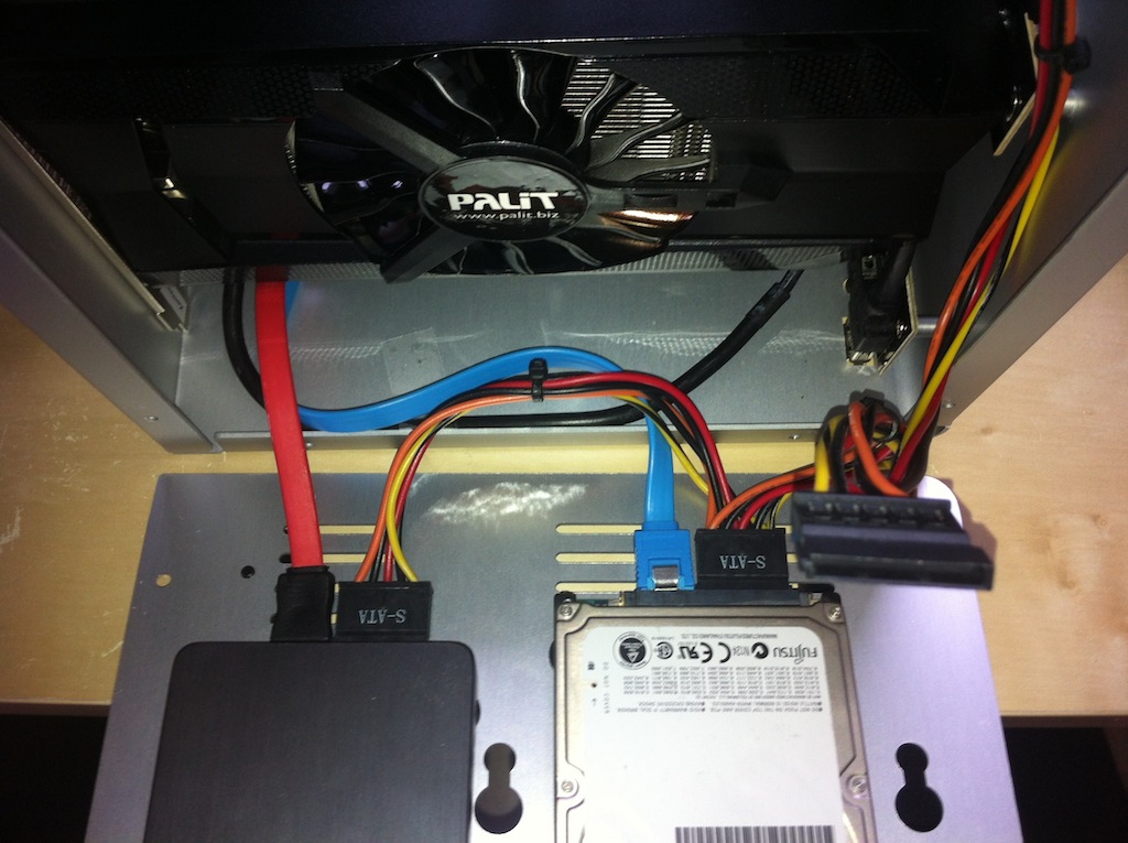 Festplatten diesmal mit den Anschlüssen "nach unten" montiert, nicht nach oben: