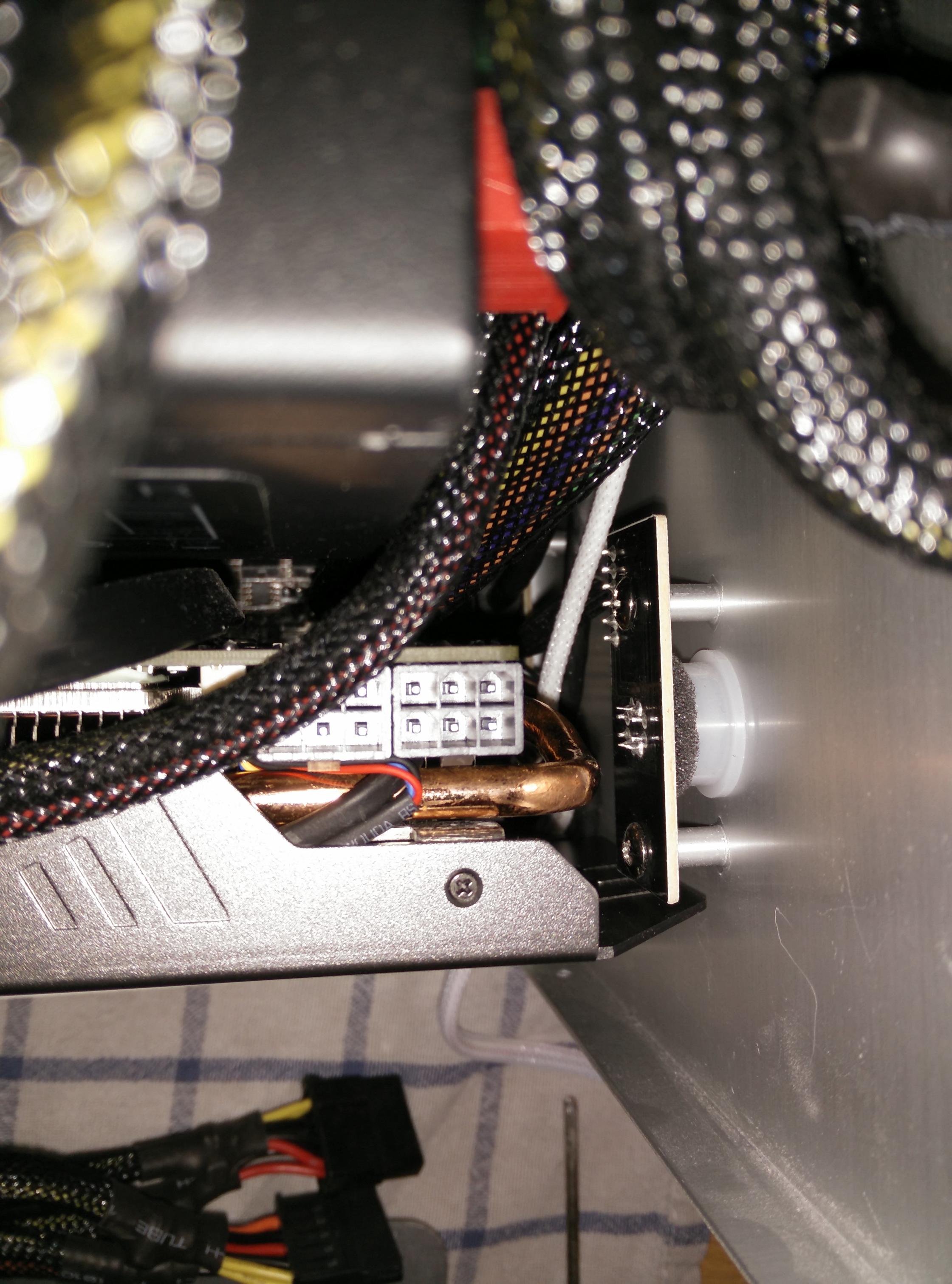 zu 1. kann ich nicht beantworten. Momentan sind da vllt. 5 mm, wenn überhaupt. Ich hab mir schon überlegt, genau diesen Lüfter als Ersatz für den Enermax Cluster, der jetzt zwischen Boden und Grafikkühler klemmt, auf den Boden zu legen und die SSD an die Seite zu pappen. In meinem Fall müsste er rausblasen, also müsste ich dann noch großzügig Material aus dem Boden dremeln, ohne dass der instabil wird. Jedoch vermute ich, dass dieser Lüfter schon mit der niedrigsten Drehzahl hörbar ist. Fängt laut technischen Daten bei 15db an glaub ich. Da ich jedoch festgestellt habe, dass die Windgeräusche hauptsächlich von der Luft, die durch die Lamellen des Kühlkörpers gezogen werden, kommen, könnte es doch leiser sein, weil der Luftstrom dann ja über die ganze Breite verteilt ist. Könnte natürlich aber auch negativ sein, weil der Luftstrom dann nicht mehr voll auf die Grafikkarte gerichtet ist und sich die Luft eventuell einen Umweg sucht. Keine Lust, das zu probieren und nachher den Lüfter rumliegen zu haben, wenn es nicht klappt ;-)