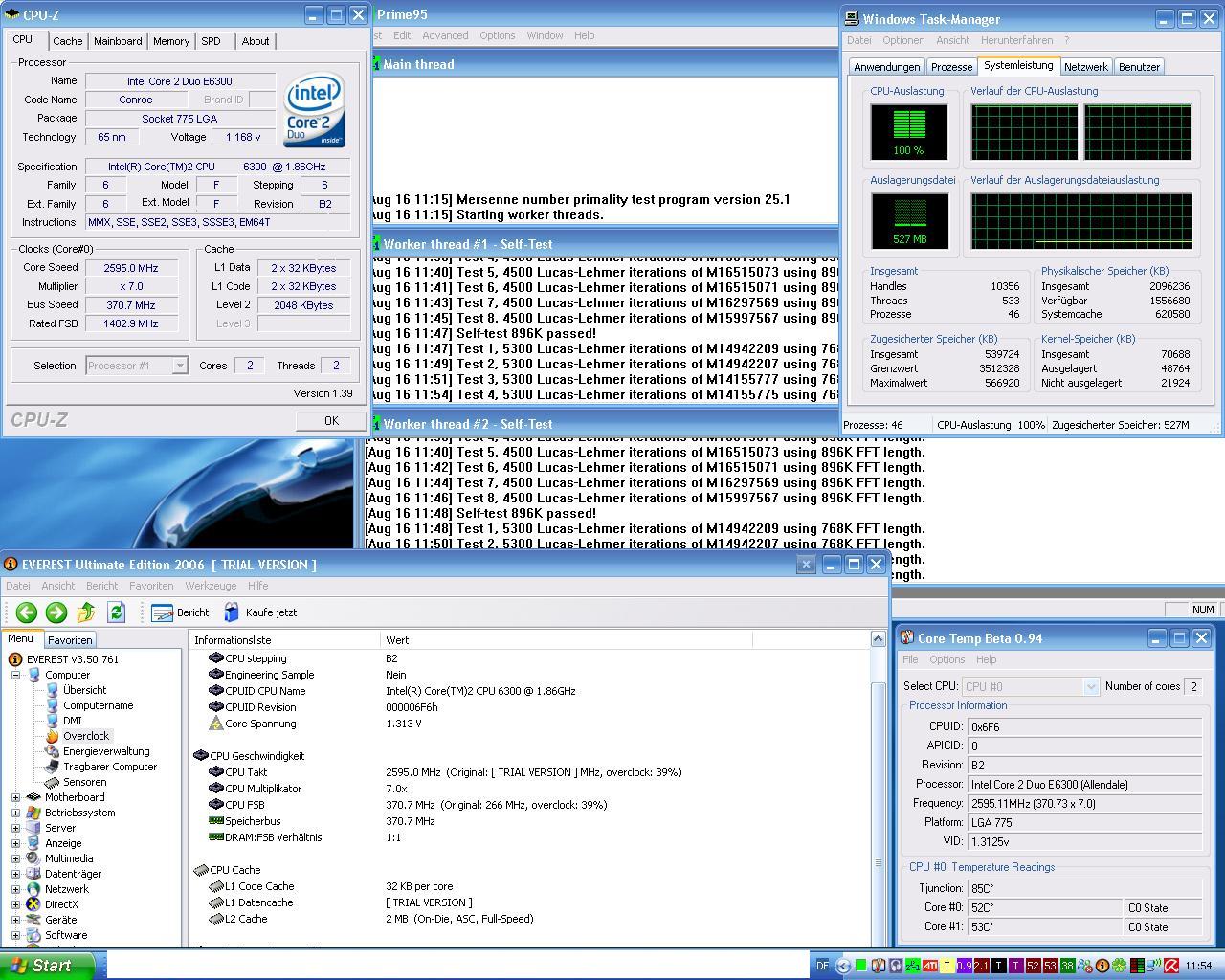 Zwar kann ich nicht mit sonderlichen Übertaktungsergebnissen glänzen, dafür aber mit niedrigem Vcore und leichtem Übertakten.