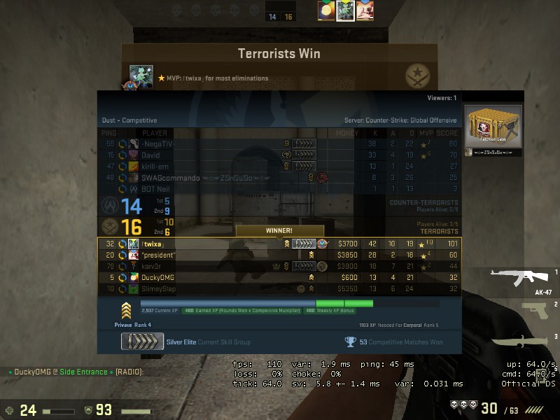 Ach, das hatte ich schon öfter. Gerade wenn man viel Maps wie Dust 1, Office, Italy usw. spielt, passiert das manchmal.