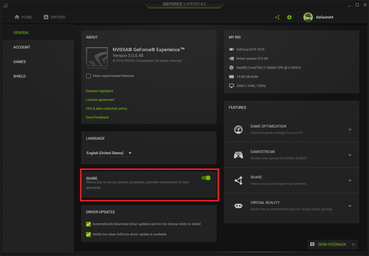 Neon-Andre schrieb:Habt ihr auch die neuste Version von Nvidia Experience drauf und seid davon total abgenervt? Sobald ich ein Spiel starte, unter anderem CS, kommt diese blöde Meldung, ich könnte meine Inhalte ja teilen und bla. Außerdem schmiert seit dem das Spiel ständig ab und ich finde keine Einstellungsmöglichkeit um den Mist auszuschalten..,