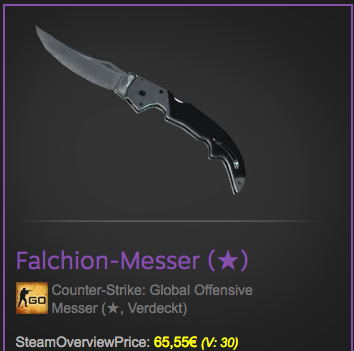 Aber mir geht es mehr ums weiter traden. Wenn ich so in den Market schaue wird das Falchion auch deutlich mehr ge/verkauft als mein GutKnife