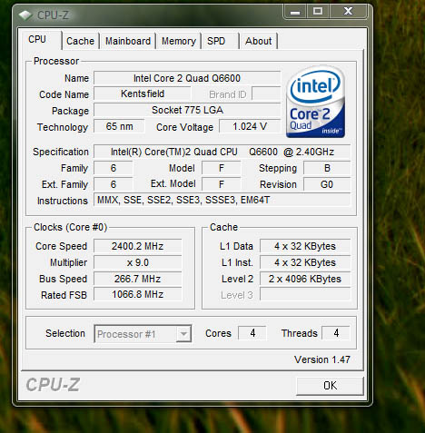 Laut CPU-Z sind es aktuell 1,024V bei 2,40Ghz - alles auf Standart (inkl. Stromspareinstellungen).