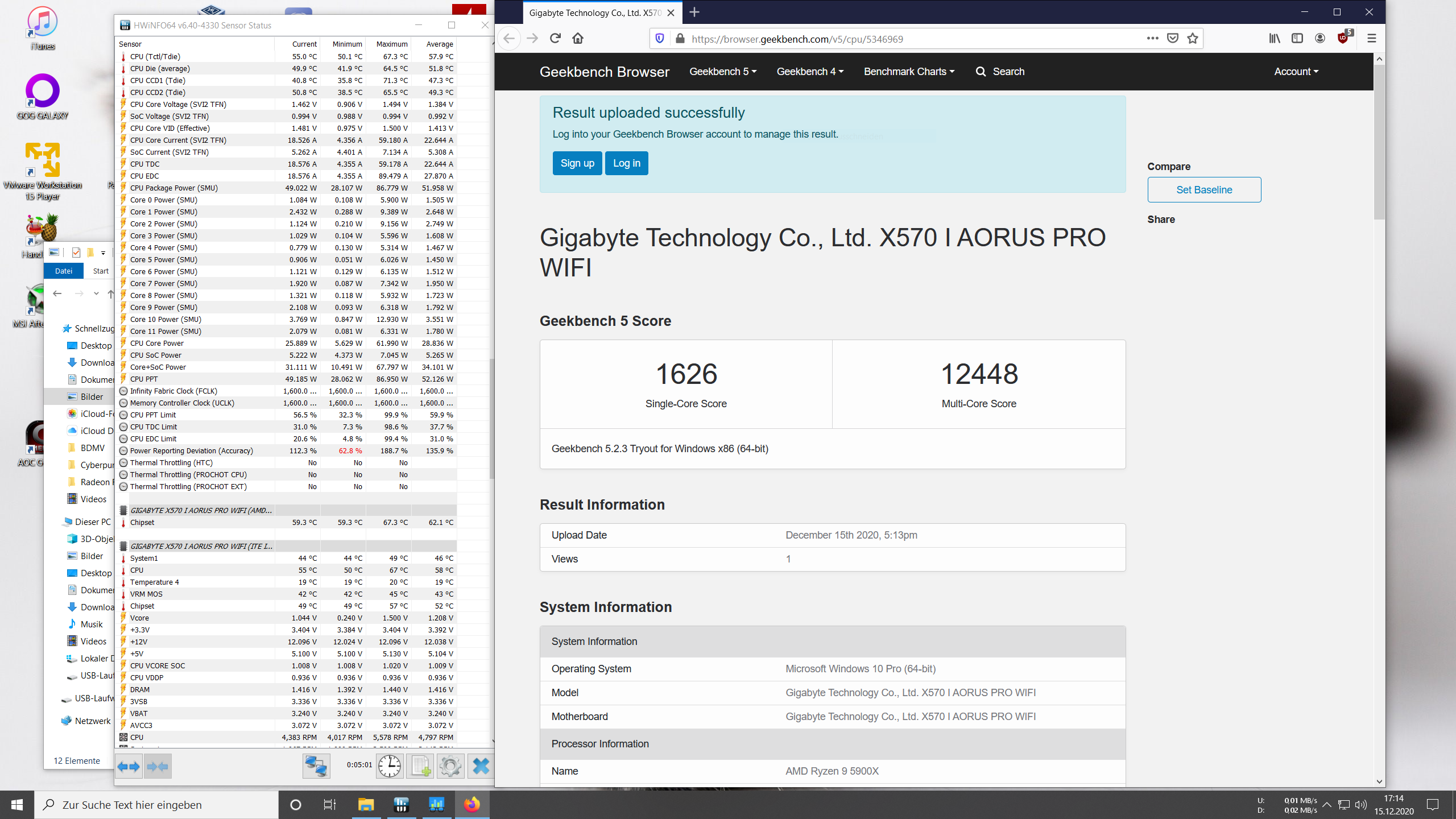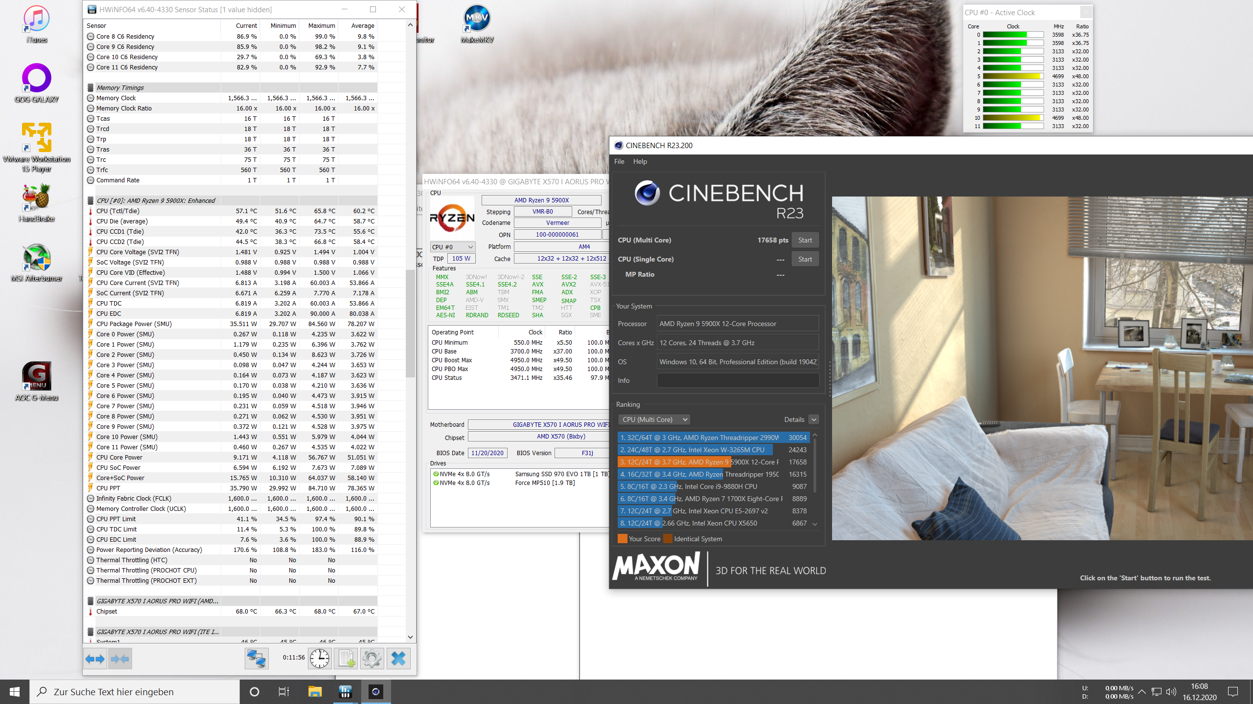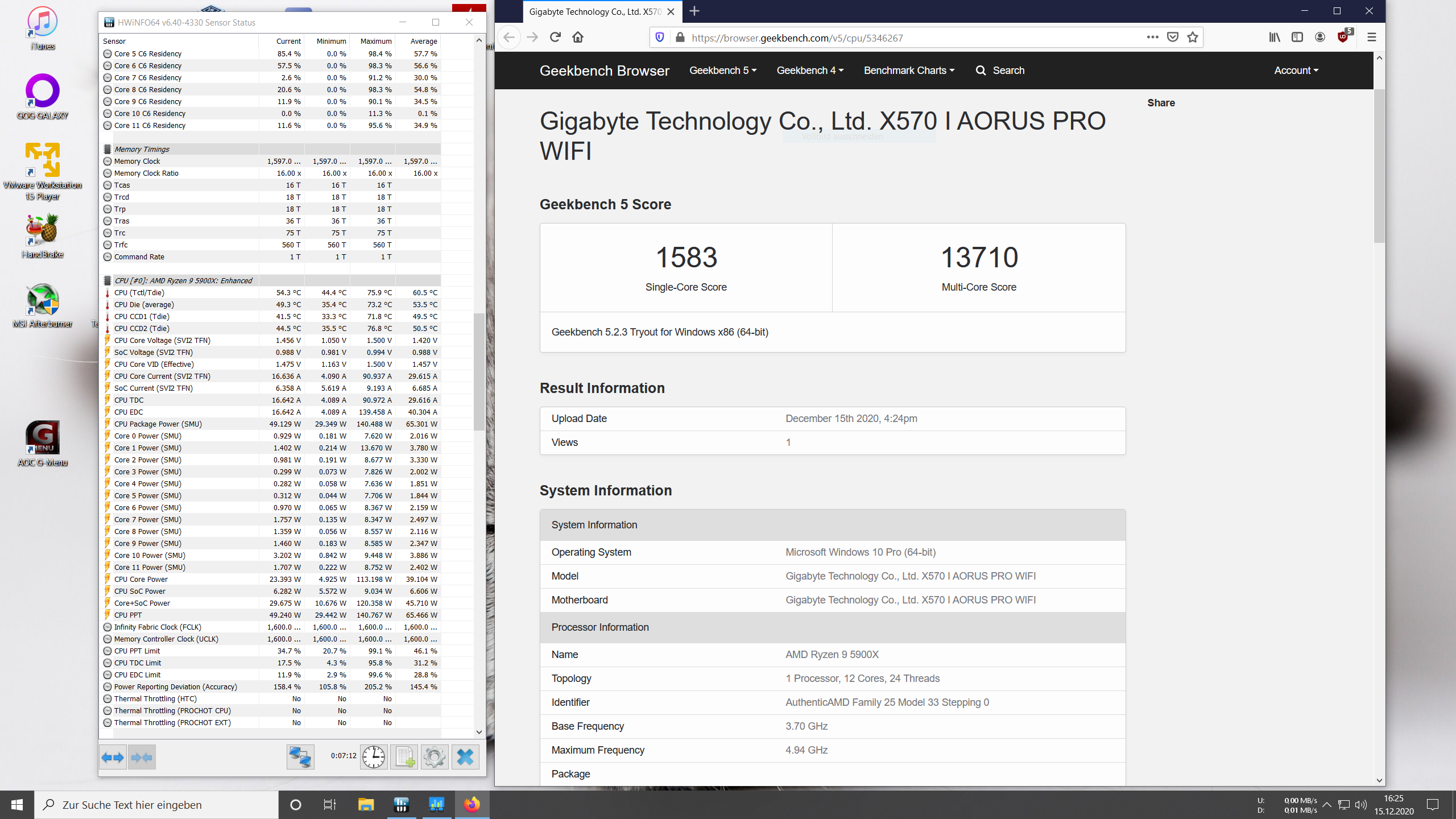 Wie auf den Bildern zu erkennen ist befindet sich der 5900X Im 105W Modus im Temp Limit. Das bedeutet der Prozessor taktet runter um nicht noch heißer zu werden. Durch das aktivieren des ECO Modus bleibt der Prozessor von sich aus kühler, weil die Leistungsaufnahme niedriger gedeckelt ist. Durch die reduzierte Temperatur wird der Prozessor also probieren höher zu Takten (dies kann sogar zu mehr Punkten als im Default führen). Erst wenn der Prozessor seinen höchst möglichen Takt erreicht hat und die Kühlung es schafft ihn in diesem Zustand unter das Temp Limit zu bringen purzeln die Temperaturen.