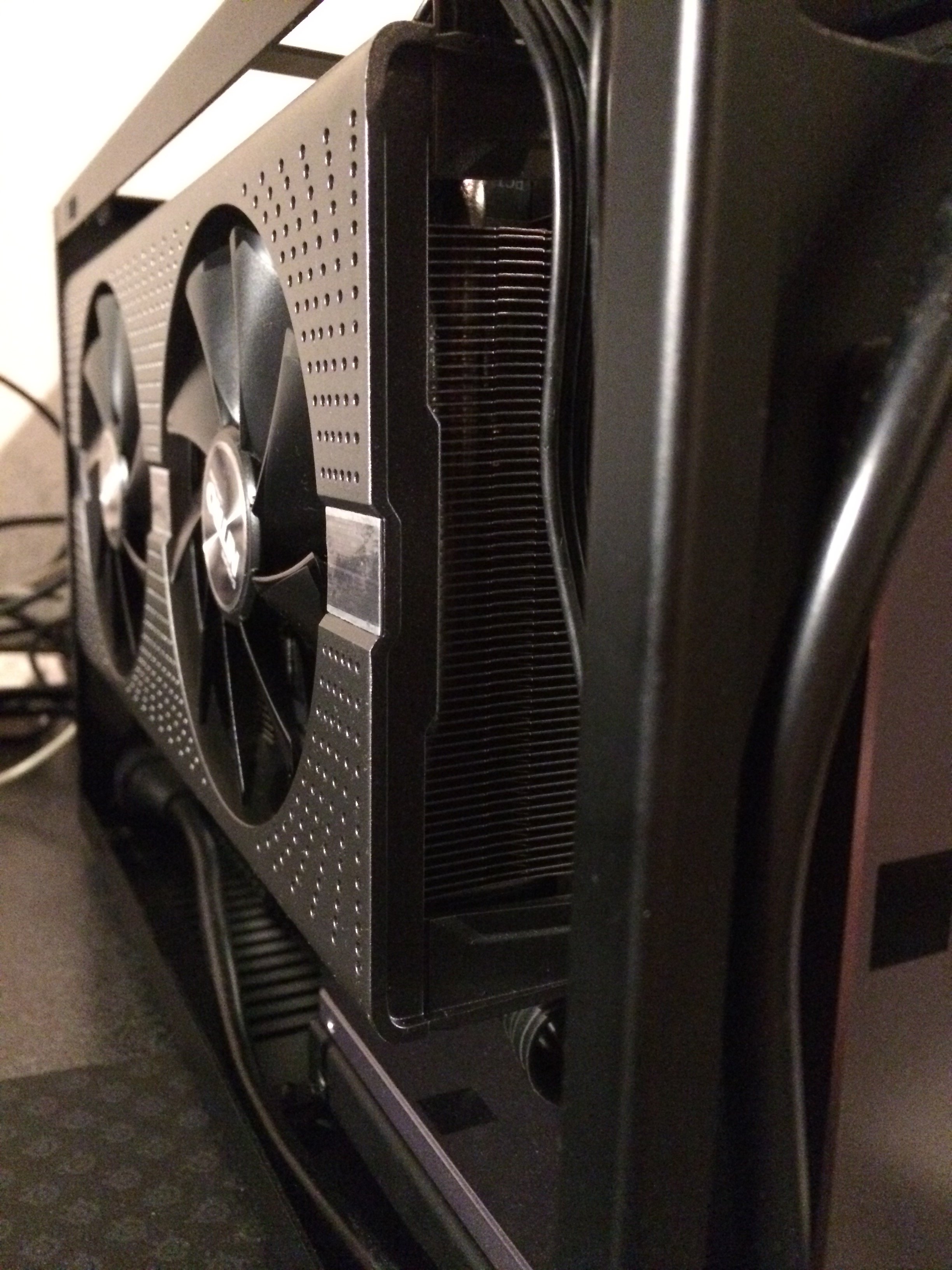Also ich habe heute einmal mit meiner GTX 980 Jetstream von Palit im Dan Case herumprobiert. Zur Klarheit, ich habe Custom Sidepanals, die das Case um 10mm verbreitern, sodass auch 2,5 Slot Karten ins Case passen.