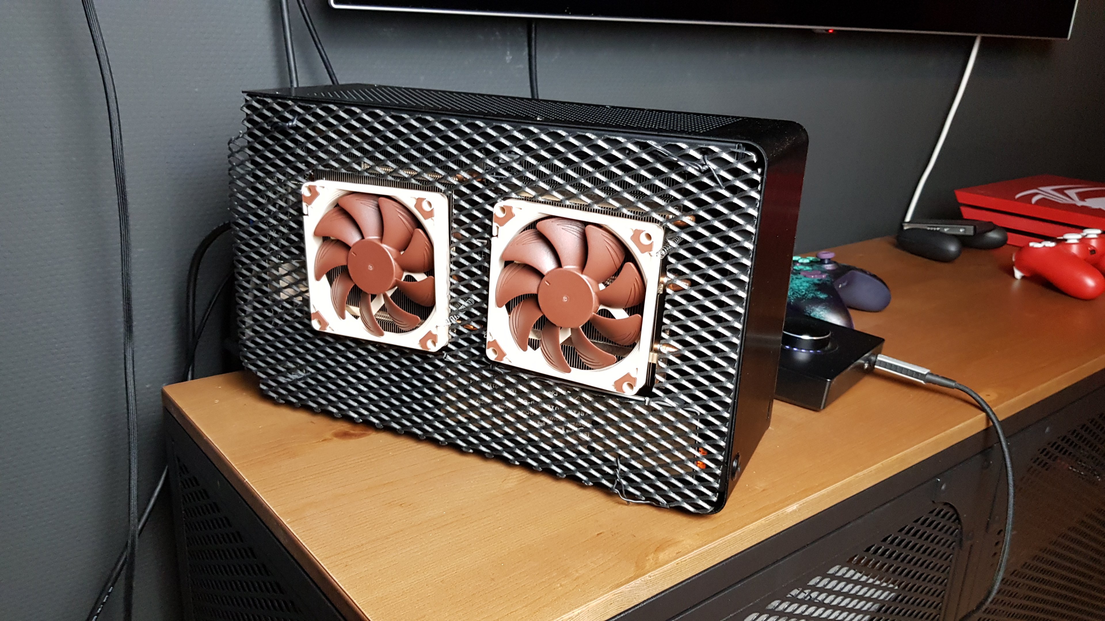 Ich dachte jetzt ich haue da irgendwie einen 40mm Noctua Lüfter rein den ich drossle für ein wenig airflow.
