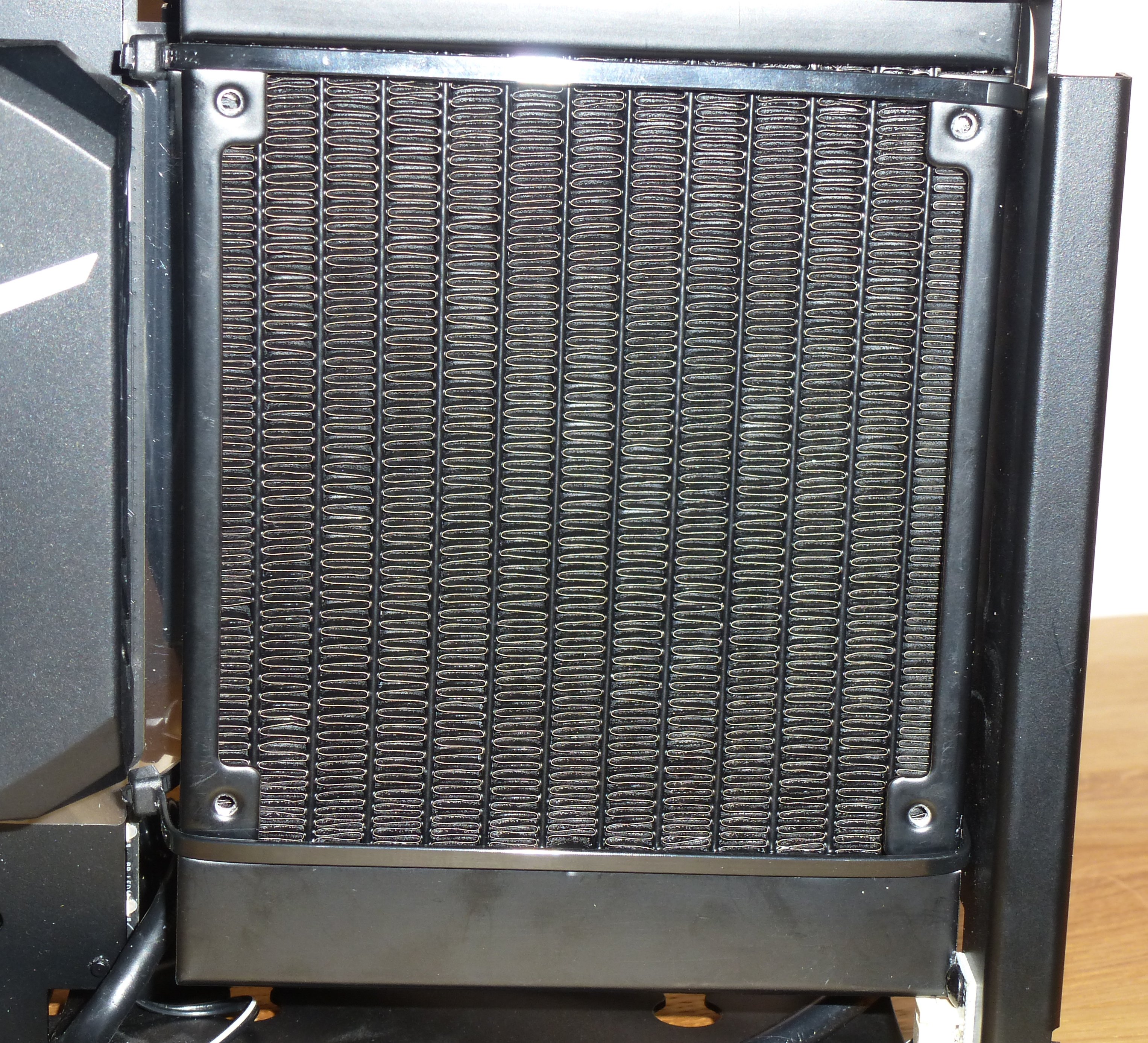 Von der Geräuschkulisse unter Last bin ich immer noch nicht ganz zufrieden (jetzt brüllt der Grafikkarten-Lüfter wieder ein wenig), aber wenigstens macht die Pumpe grundsätzlich kein nervendes Geräusch, sondern eher ein beruhigendes, leichtes Brummen. Zum Glück habe ich auf der Board-Seite ein Fenster, somit haben die Schläuche der AIO mehr Platz.
