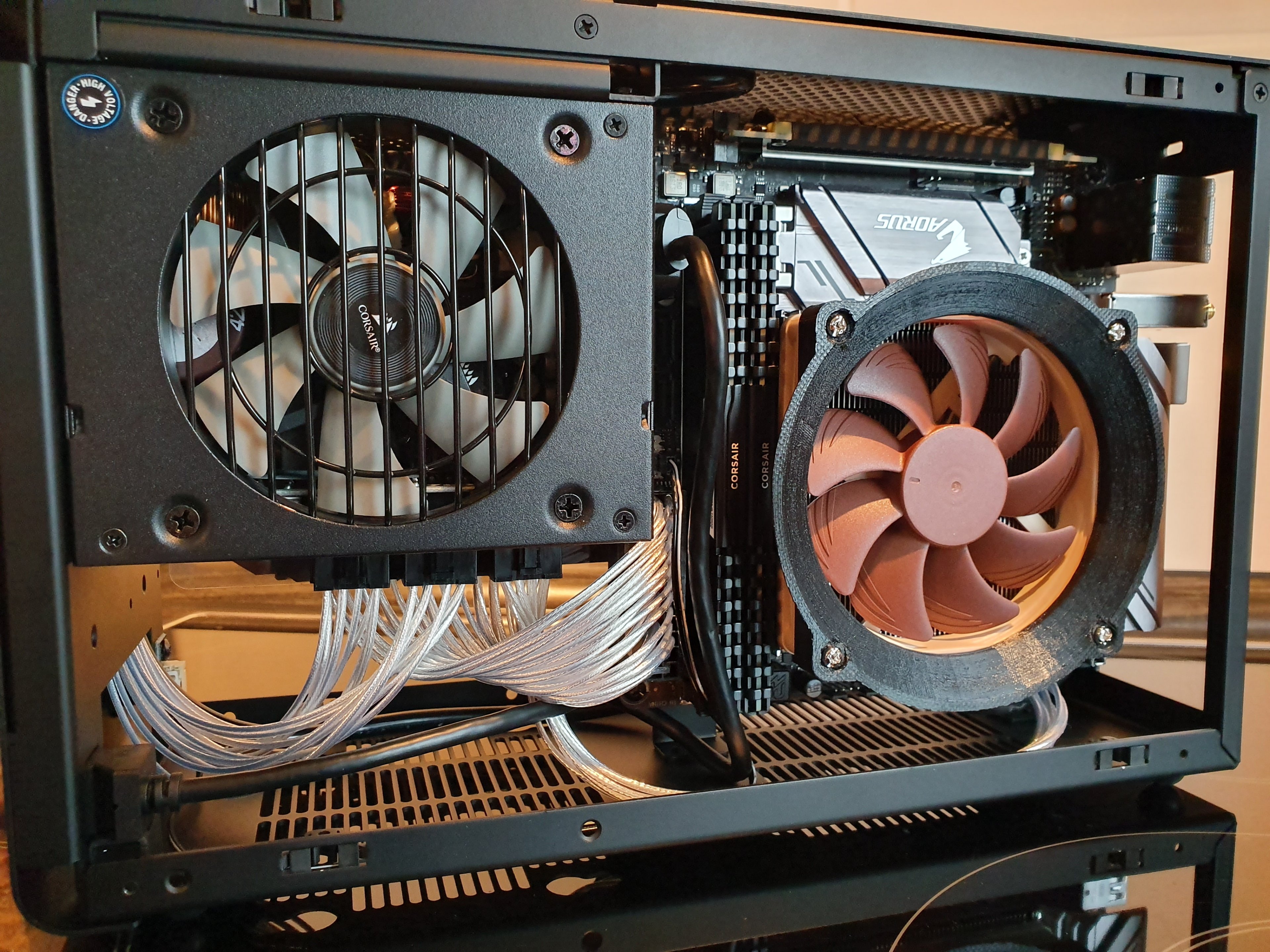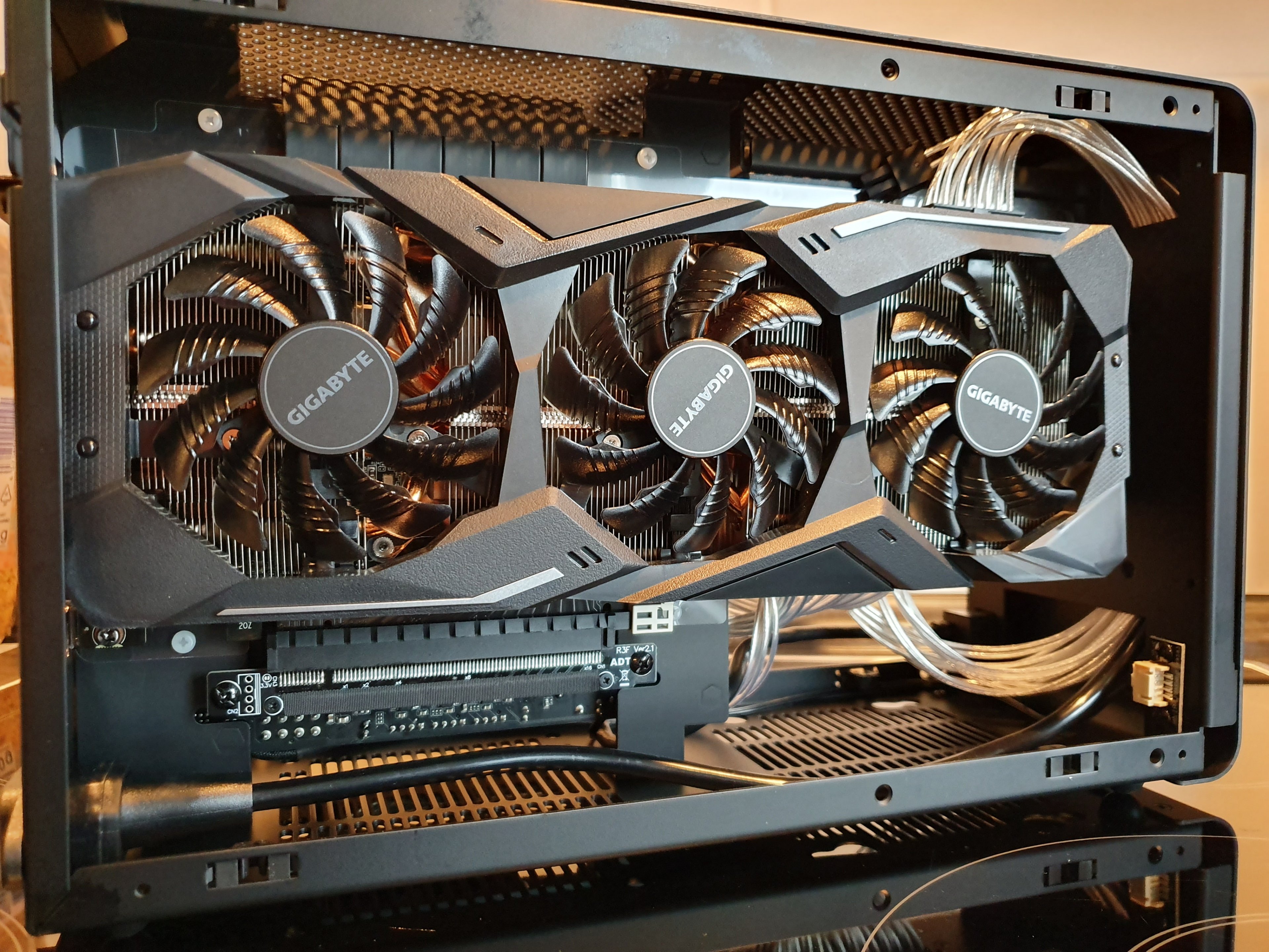Wollte die Adern erst parallel legen, ging leider nicht, dann in Reihe ging auch nicht, dann stufenartig nach rechts oben um den Radi herum da die GPU die Adern in den Lüfter gedrückt hat.