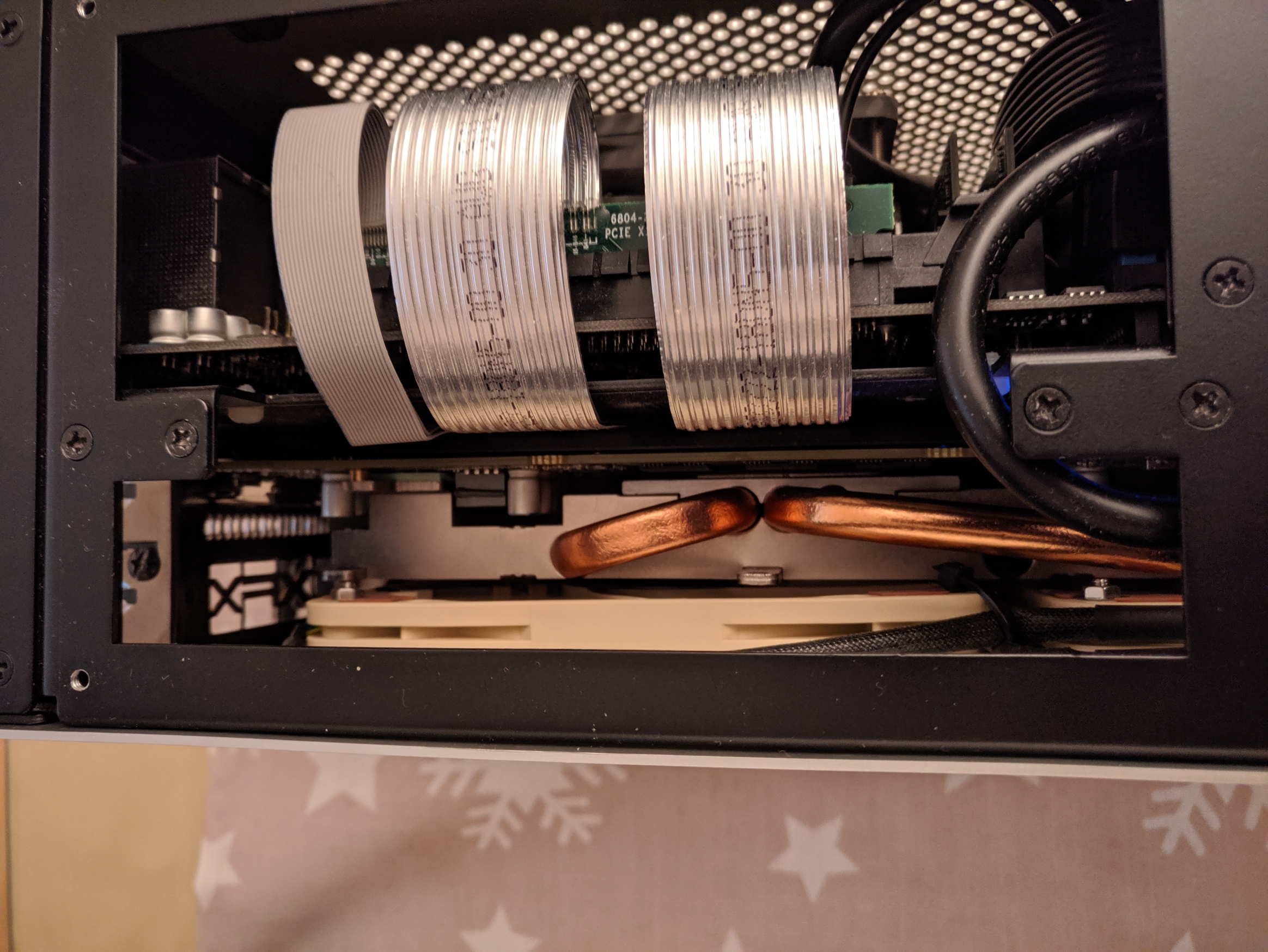 @b1te: Die A12x15 brauchen min 10mm Abstand zum Seitenteil um keine Turbulenzen zu erzeugen. Andere Lüfter wie der A12x25 oder A9x14 sind da genügsamer.