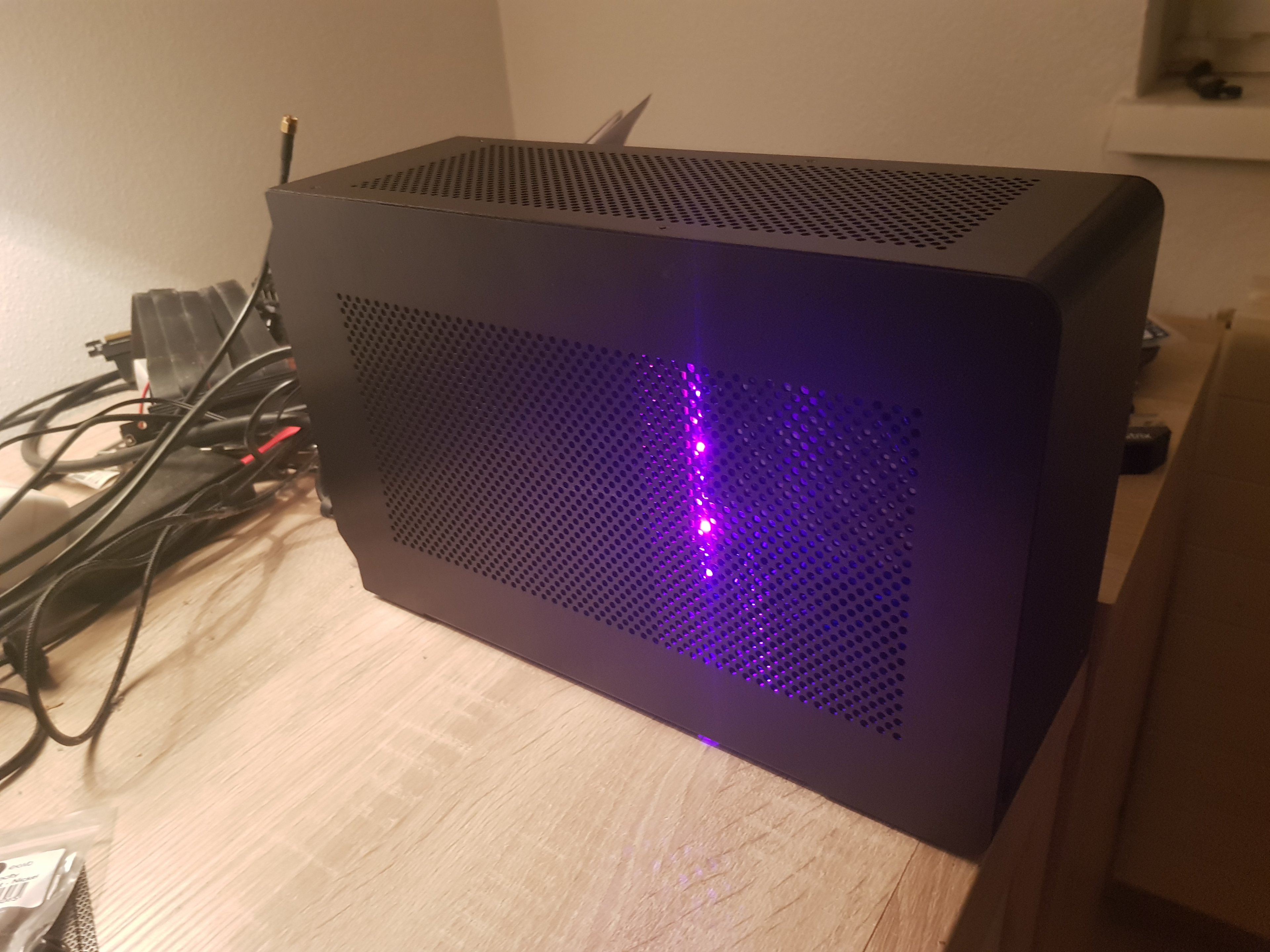 cpu kühler geht sich gerade so aus , der riser is ein wenig unhandlich, und das psu kabel ist zu lange