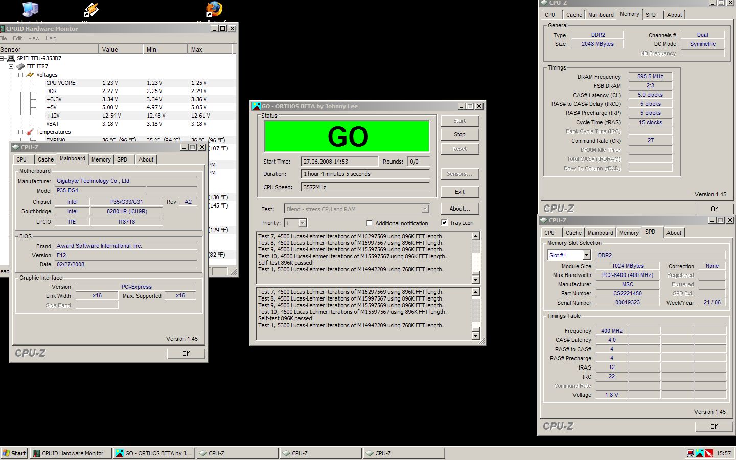 G.Skill PC2-6400GBHZ / 2 x 1024 / GMH / 410Mhz / 615Mhz / 5-5-5-15 / 2.30V / Heatspreader + 2x120mm Lüfter / ASUS P5K WS / Saturas