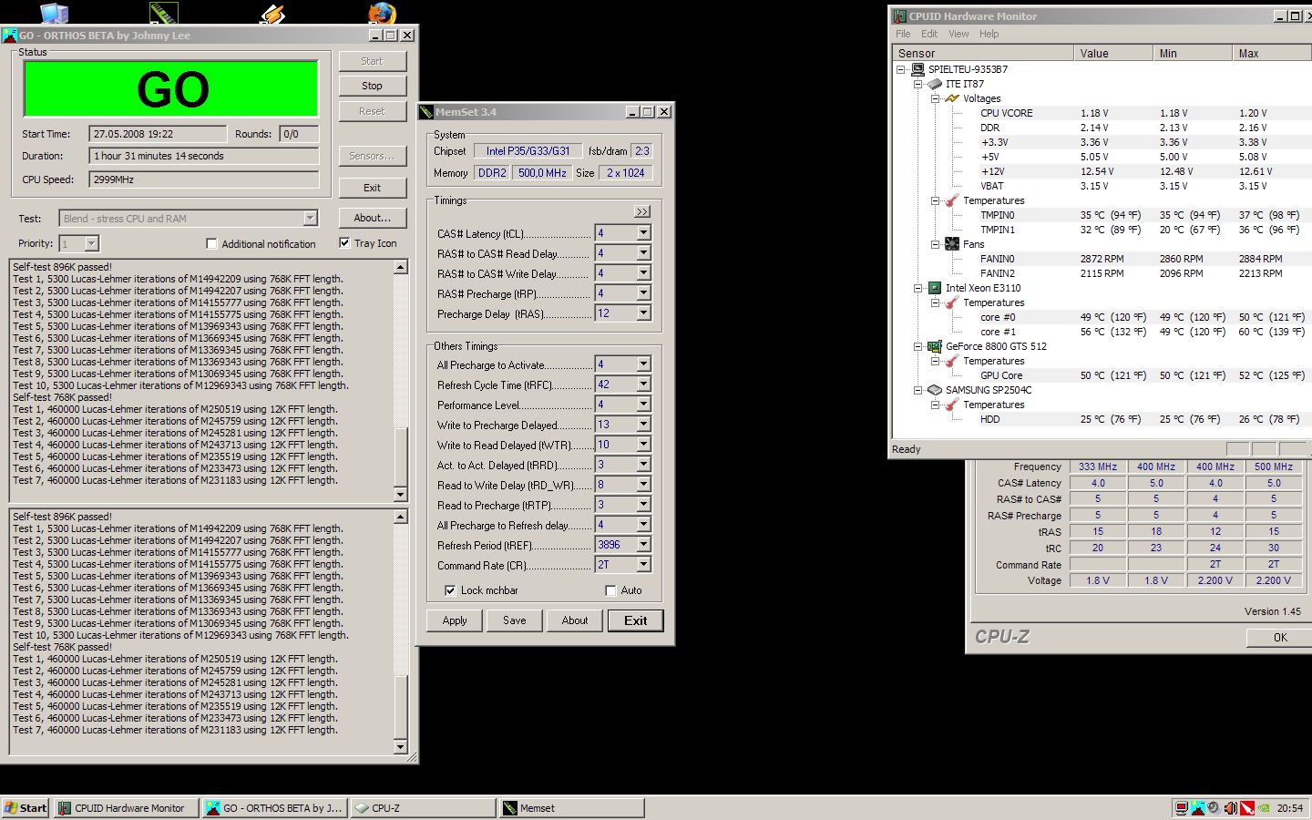 G.Skill PC2-6400GBHZ / 2 x 1024 / GMH / 416Mhz / 520Mhz / 4-4-4-12 / 2.25V / Heatspreader + 120mm Lüfter / ASUS P5K WS / Saturas