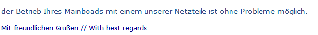 Übrigens habe ich bei BE Quiet wegen der Kompatibilität meines NT mit dem DFI LANPARTY DK 45-T2RS Plus gefragt. Von dort bekam ich die im Anhang befindliche Antwort. Mal sehen, ob´s stimmt...