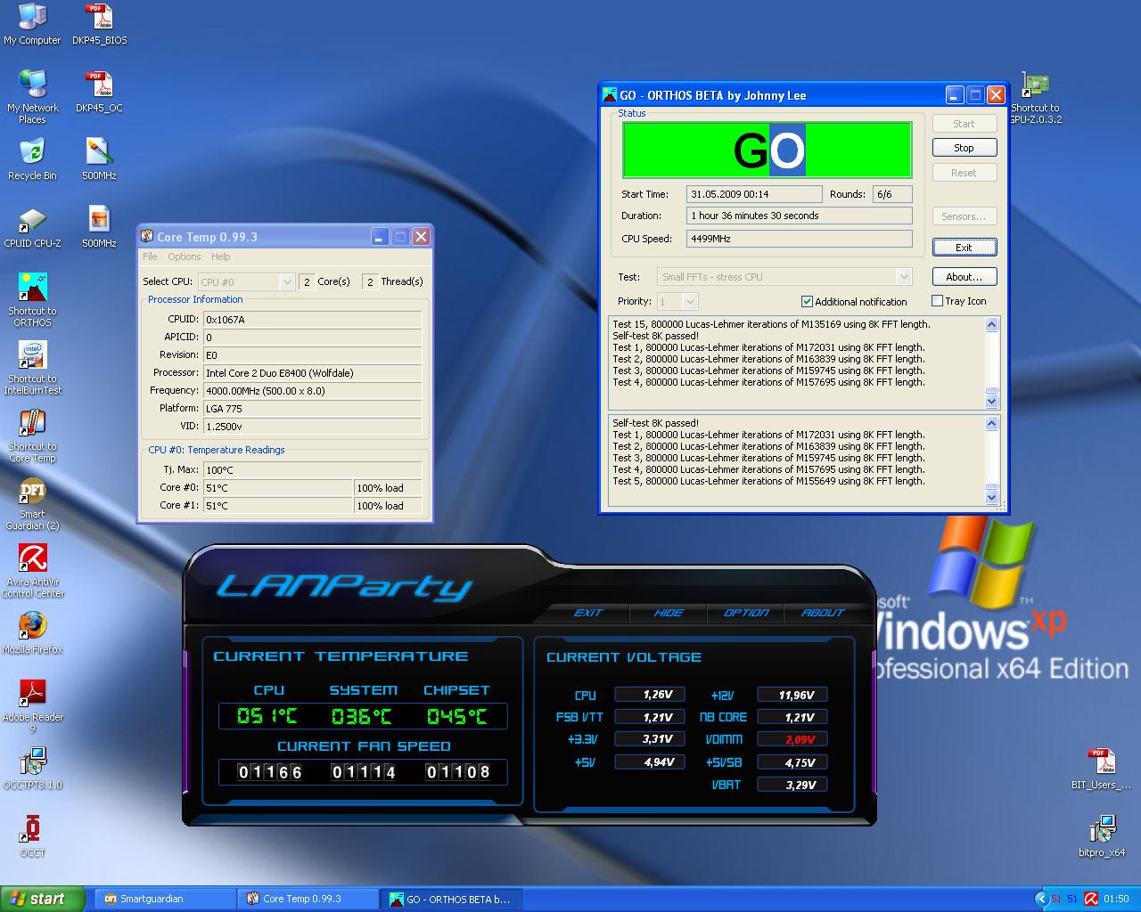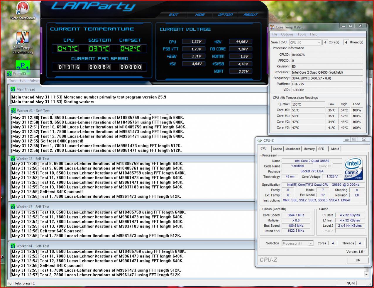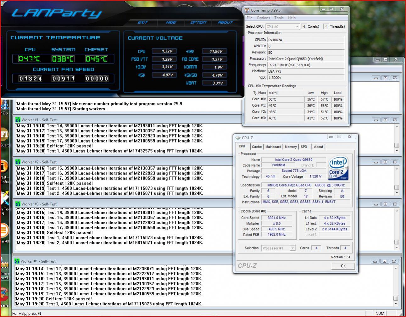 Ich lasse das vier Stunden mit large FFTs laufen, danach gehe ich auf 500 MHz und lasse erst mal die Settings wie mit 490 MHz (?).