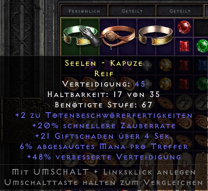 Auf alle Fälle. Der "Dornen-Kamm" ist super! Leider schlägt das 0815 Shako (Harlekinskrone) so gut wie alles. Aber ich persönlich mag Items, die sich vom ewig gleichen Standard absetzen.god-necromant schrieb:würdet ihr eins von denen für irgendwas nutzen?