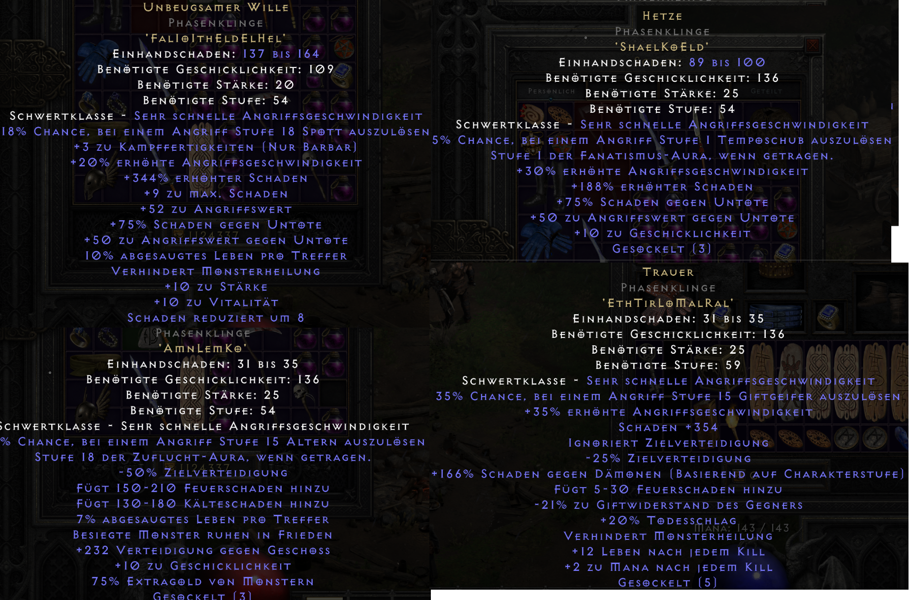 wenn Runen Mangelware sind, sind Notlösungen evtl. Crescent Moon und Lawbringer (fĂŒr Akt 1+2 bzw Pindle)