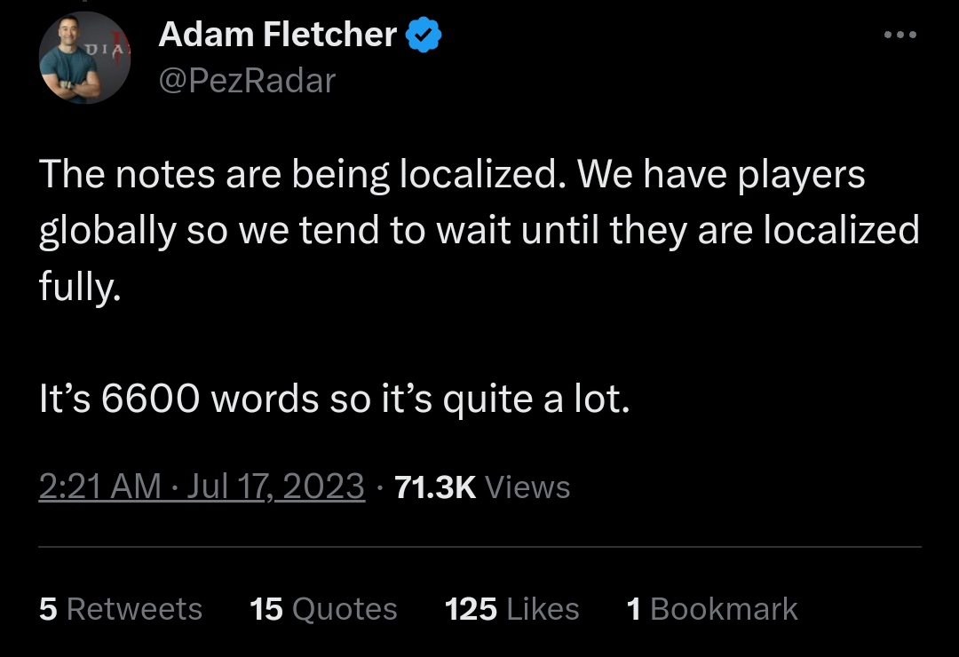 Das Update ist 8GB+ groß und da ist die neue Season + all die Änderungen drinnen. Die Änderungen sollten auch gleich zu sehen sein in Richtung Balancing, etc.