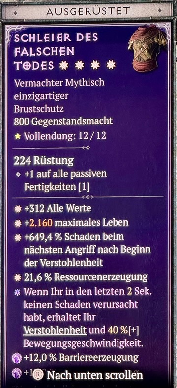 Unti wirst mir dann fehlen bei meinem Grind auf 300, hab ja noch 25 Level vor mir đ aber 1 Item wird mich an die Stunden immer erinnern, mein bisher wertvollstes und seltenstes in D4 das ich gestern bekommen habe ....