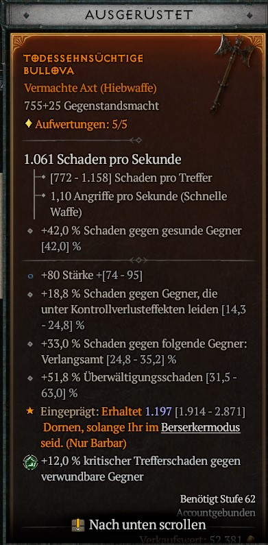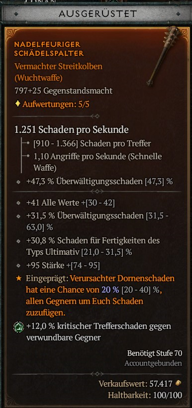 ja ich weiß 😁 auch mit dem Necro gehts richtig geil... da profitiert sogar der Golem vom Dornenschaden oder eher gesagt der macht ein vielfaches mehr Dornenschaden über den Necro als er selber überhaupt jemals Schaden machen könnte.olsev_baiden schrieb:Gibt diverse yt-Videos mit Dornenbarbaren, geht gut wie's aussieht.