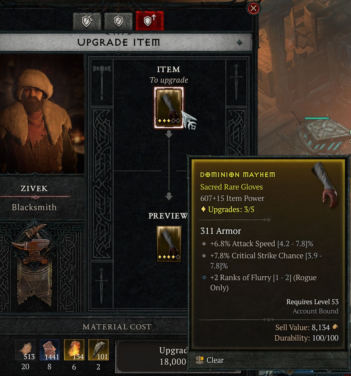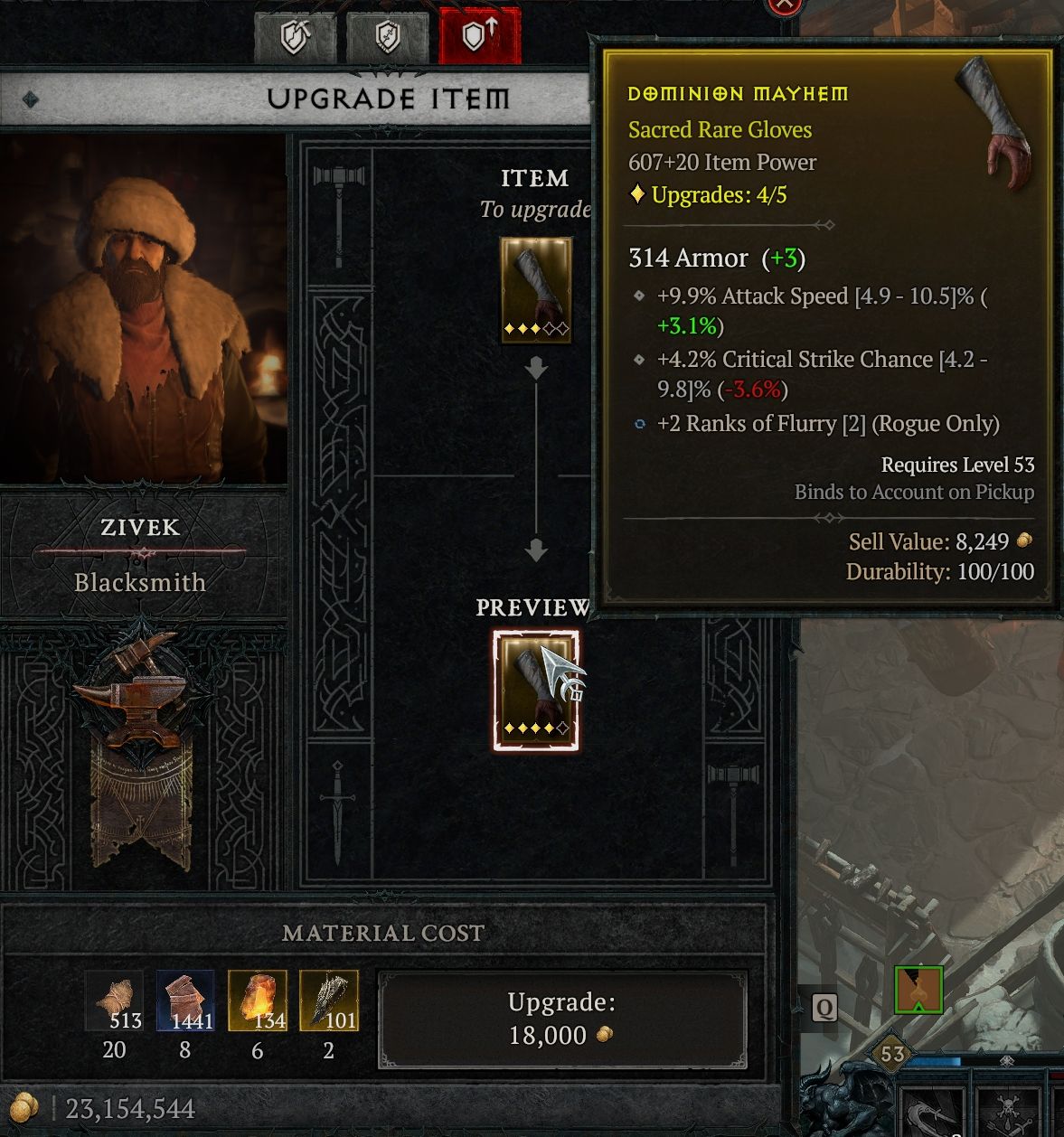 wie darf das verstanden werden?HAse_ONE schrieb:Simples Beispiel: in der jetzigen Stufe des items kann critchance von 10-25% rollen und das Item hat 25% also perfekter roll. In der nächsten Stufe kann es von 20 -35% rollen. Durch überschreiten des Breakpoints werden alle stats neu gerollt und so kann es dann passieren dass hier critchance nur 20% rollt und somit schlechter als davor.