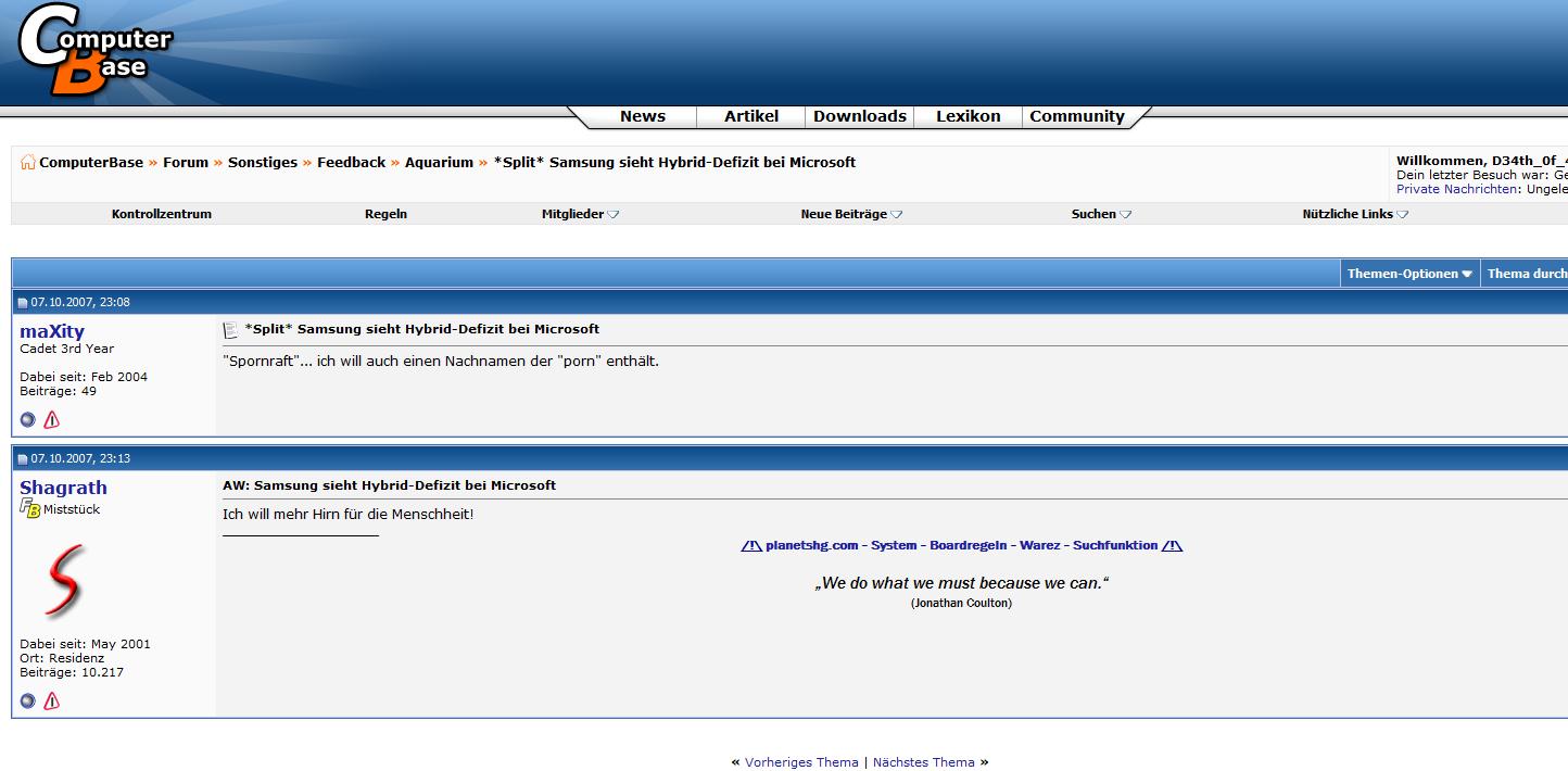Ihm hat man sogar den Rang und die Beiträge aberkannt. Nichtmal ein Link ist hinter seinem Namen hinterlegt.