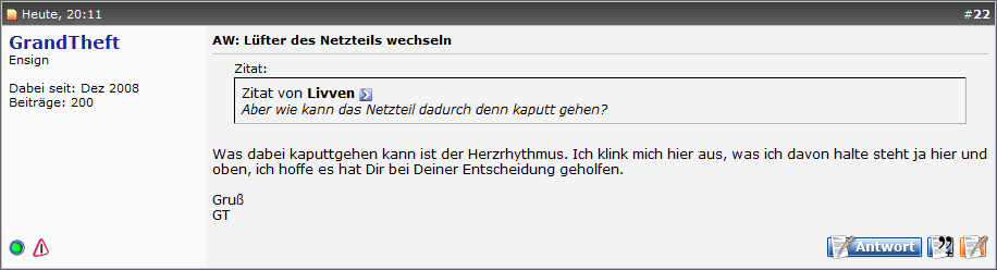 Passend zu dem Tema hab´ auch grad einen gefunden.