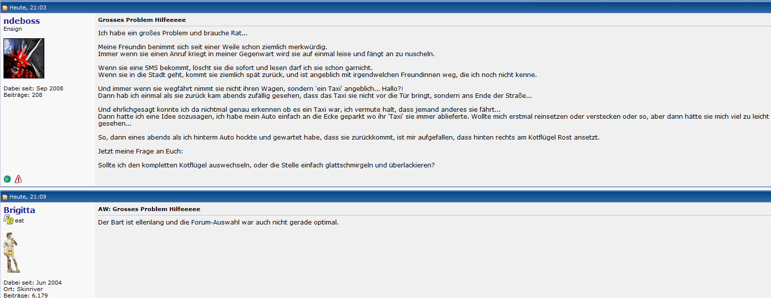 Sonny_White66 Commodore Registriert Juli 2008 Beiträge 5.007 9. November 2009 #686 Zum Glück gibt es "Die besten Foren Screenshots" . Anhänge CB-Die besten Foren-Screenshots..jpg 58,2 KB · Aufrufe: 810