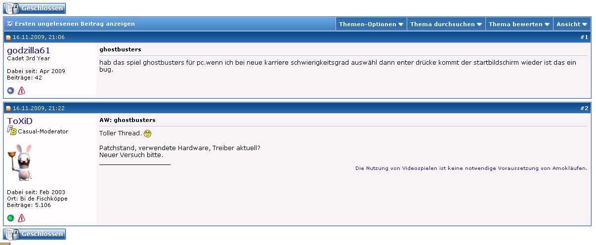 Skeleter Lt. Commander Registriert Okt. 2008 Beiträge 1.342 25. November 2009 #699 Tja, so ist das halt!^^ Anhänge Ghostbuster closed.JPG 68,9 KB · Aufrufe: 742