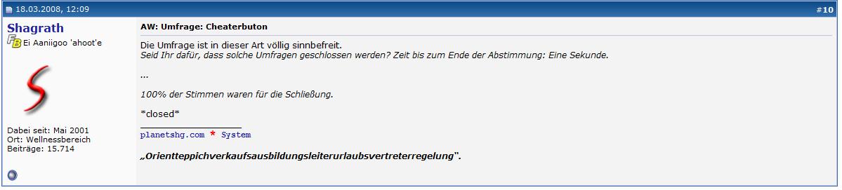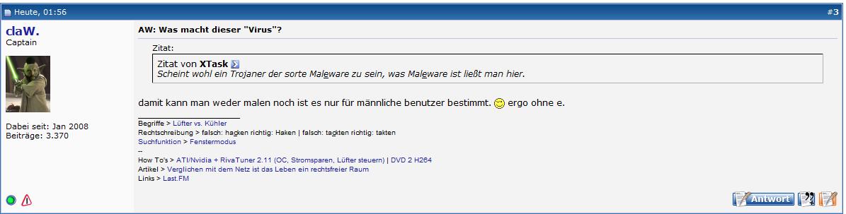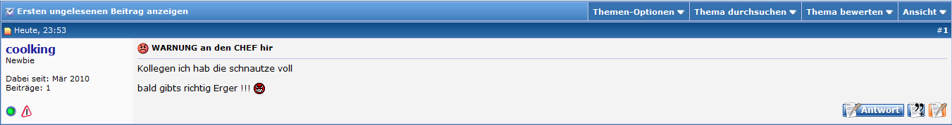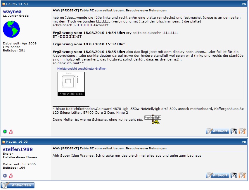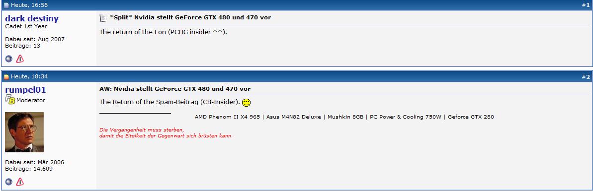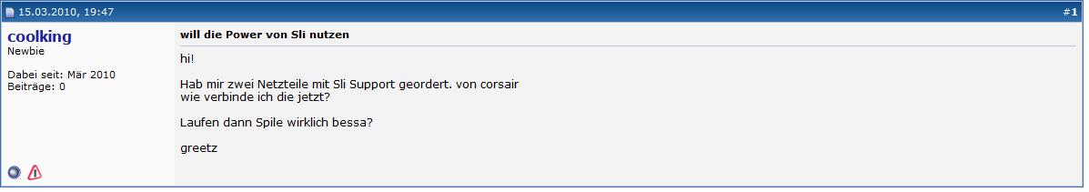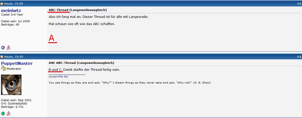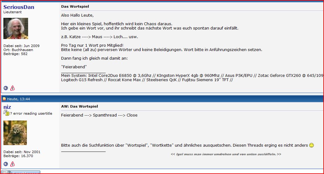 Naja, jemand postet so viele Beiträge in so kurzer Zeit, dass er in einem Unterforum eine ganze fortlaufende Linie mit seinem Namen hat. Wenn dann jemand anders was postet, wird die Linie gebrochen. -> ein ComboBreaker
