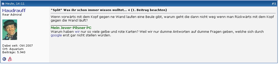Edit: Ich hab doch tatsächlich noch was übersehen! Man beachte den Namen des ersten Antwortenden. Zufall? Verschwörung? Hüter der Zeit? (Danke, moquai!)
