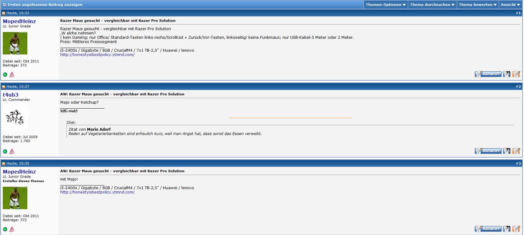 Guckt mal auf das Benutzerbild und bringt es in den Zusammenhang mit den "Anliegen" (nur was für Leute, die das Meme verstehen ). Musste wegen Atemnot vor Lachen einen Arzt rufen.