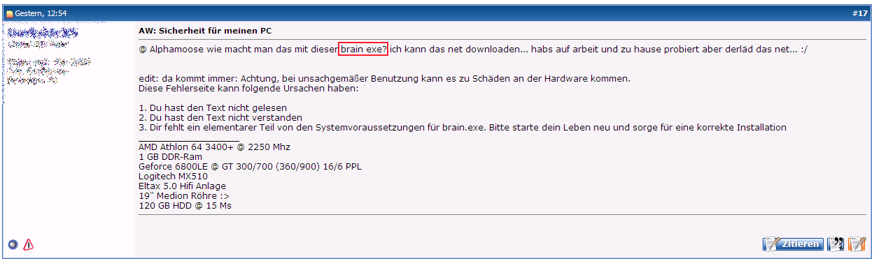 Hab ich aus nem alten fred von hier gefunden und als ich das las, konnte ich nimmer vor lachen