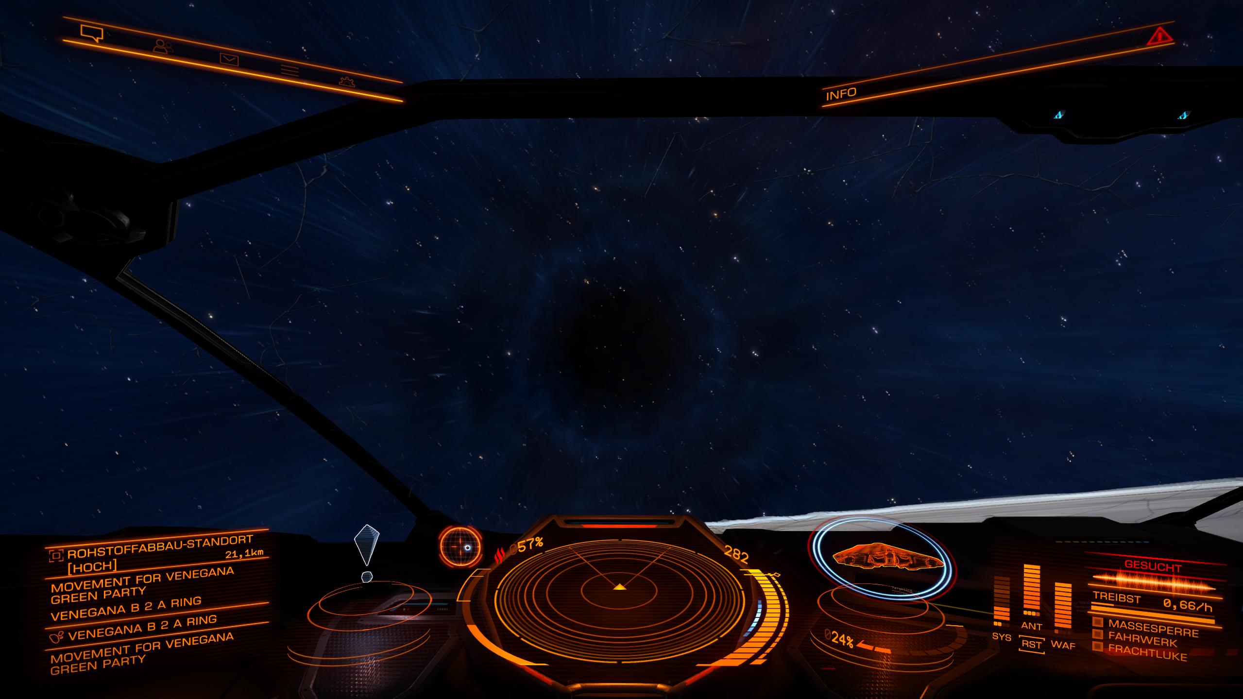 Das ist der Supercruise (nicht Boost). Und der Wirbel ist ein Abfangversuch (Interdiction). Und sich auf den blauen Kreis auszurichten und dort zu halten bis der blaue Balken voll ist war ebenfalls richtig. Wenn Du das immer schaffst dann wird auch der Abfangversuch immer erfolgreich sein. Es hängt aber auch von der