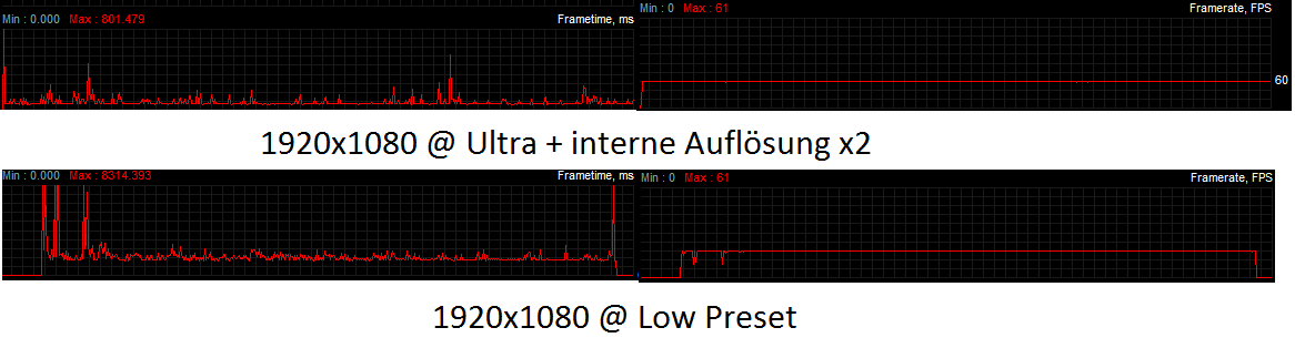 Meine sehen auf Low sogar nervöser aus, als auf den Einstellungen, auf denen ich eigentlich spielen möchte. Fühlen sich auch so an. Low sorgt für mehr Zittern, als Ultra. Nur habe ich mich nie großartig mit Frametimes beschäftigt und kann nicht berurteilen, ob das was ich nun als "nervös" bezeichne, normal ist.