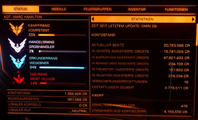 Und ich habe zwar mehr Kosten für Reparaturen und Treibstoff, habe aber auch mehr Spielzeit, daher sagt das weniger aus. Der Munitionsverbrauch ist aber trotzdem bei Dir wesentlich höher, ich scheine also mehr Energiewaffen einzusetzen