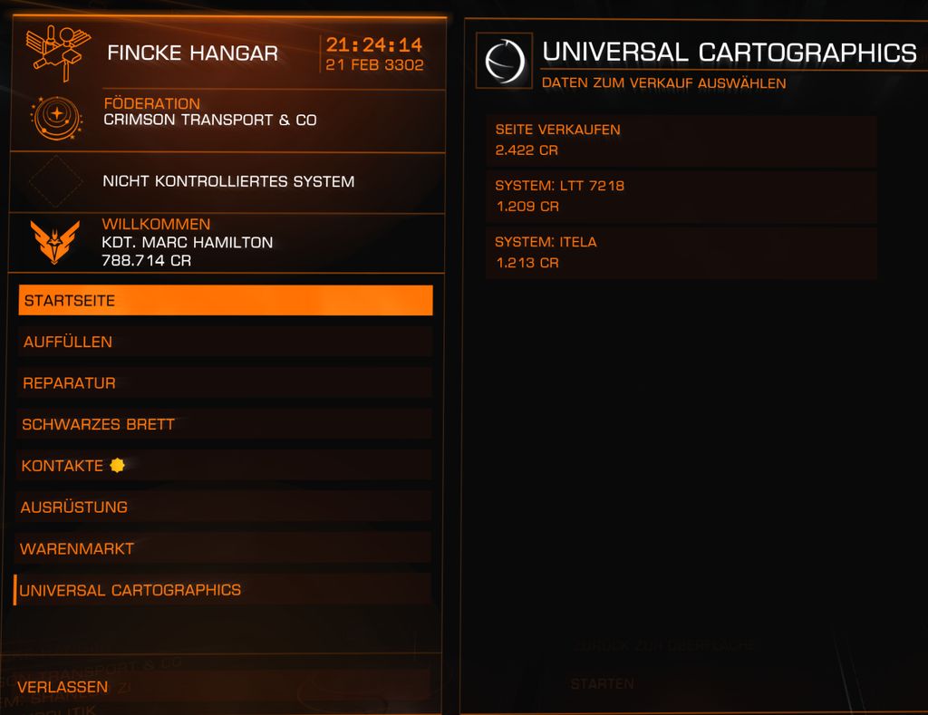 - und auch das Zwischenstop-System gescannt, in dem ich ein paar Waren verkaufen und kaufen und auftanken wollte.