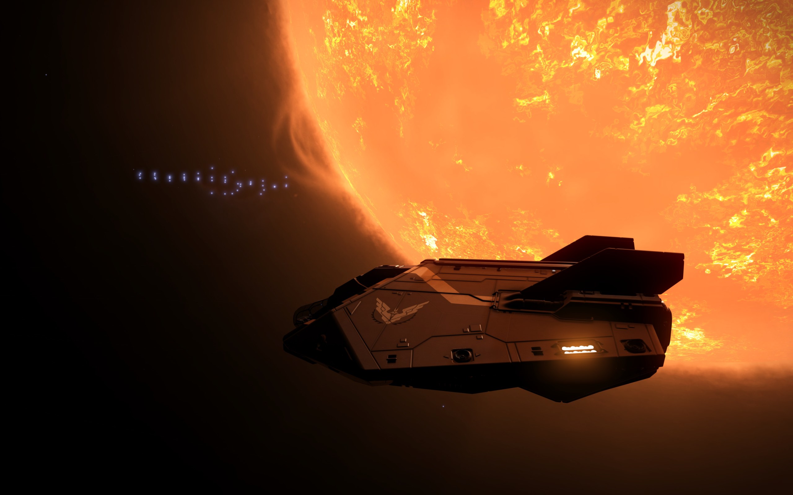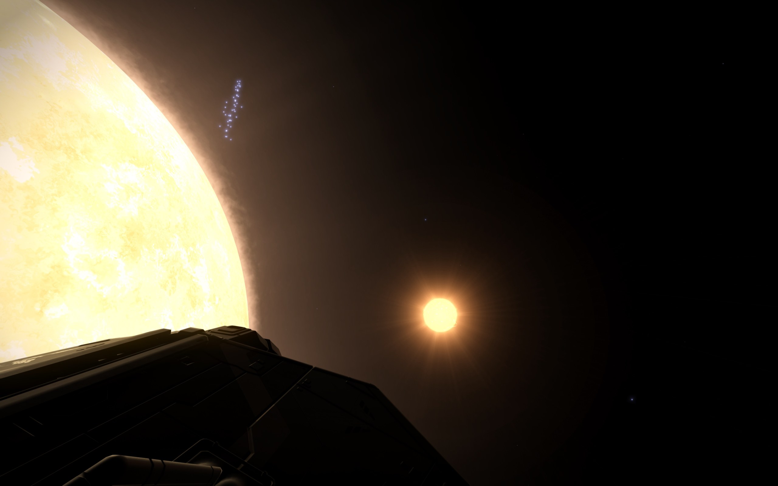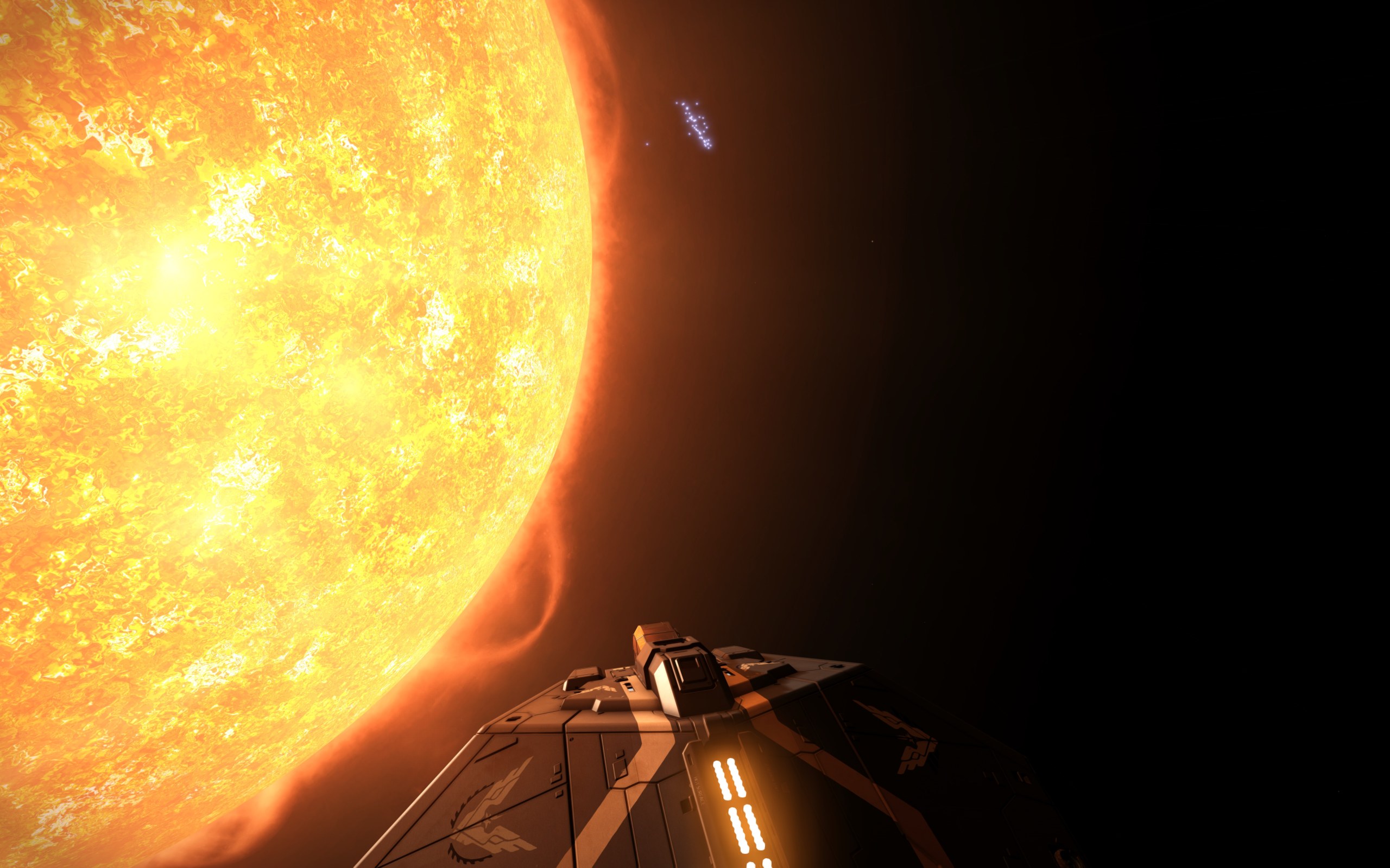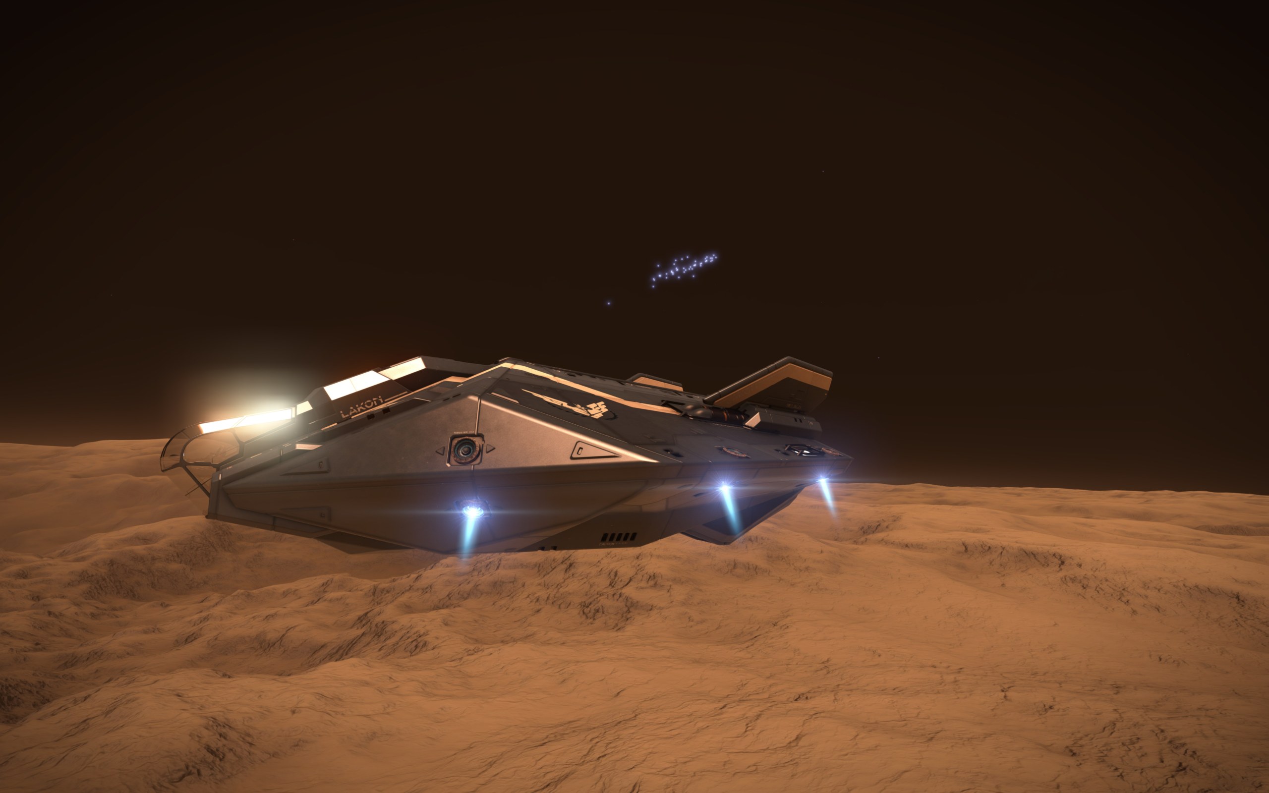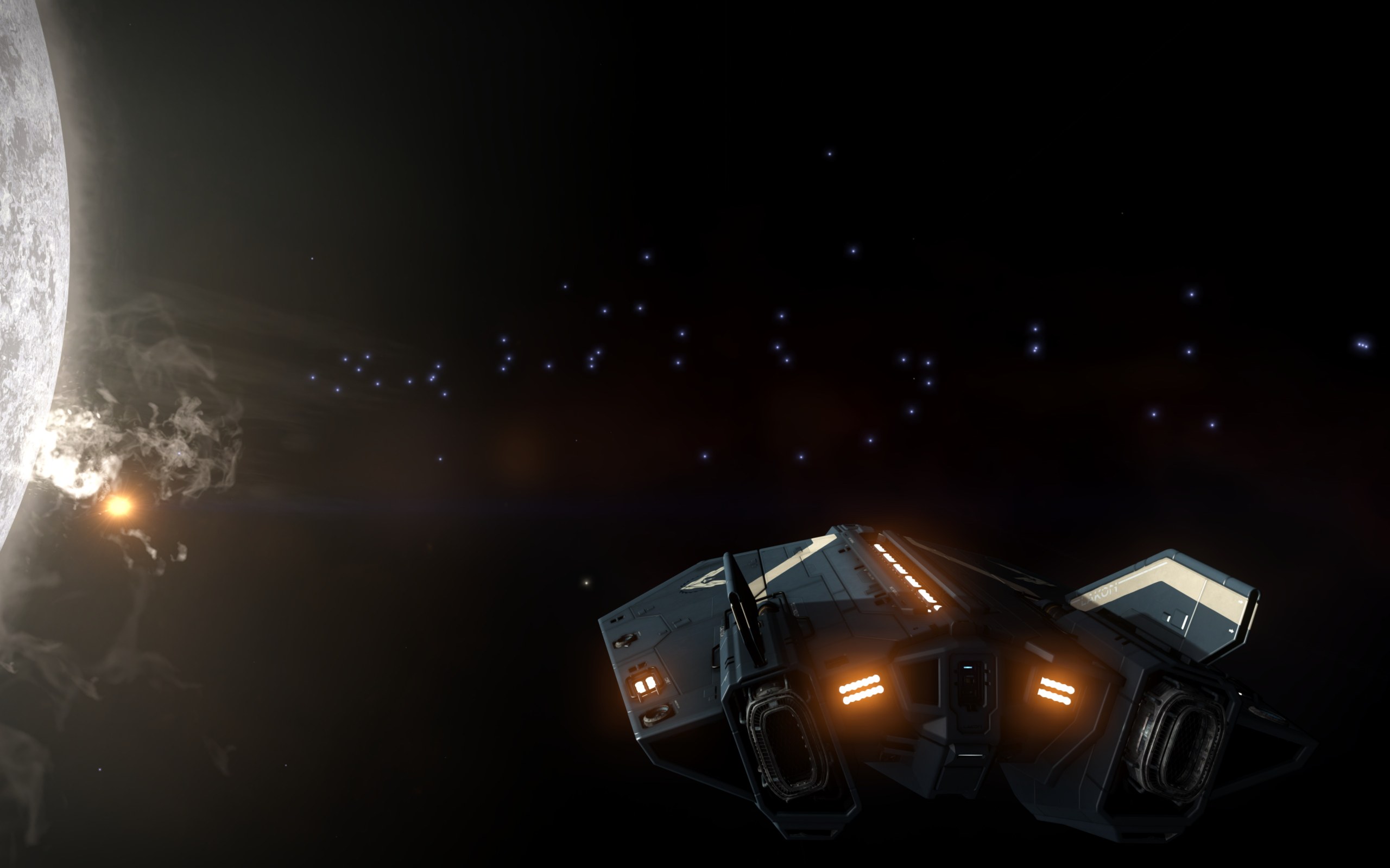 Gestern habe ich paar Cutter gesehen, die gehörten zu der Spieler Fraktion. Dann gab es auch wieder einige, Cobras, Fer-de-Lance und auch eine Corvette.