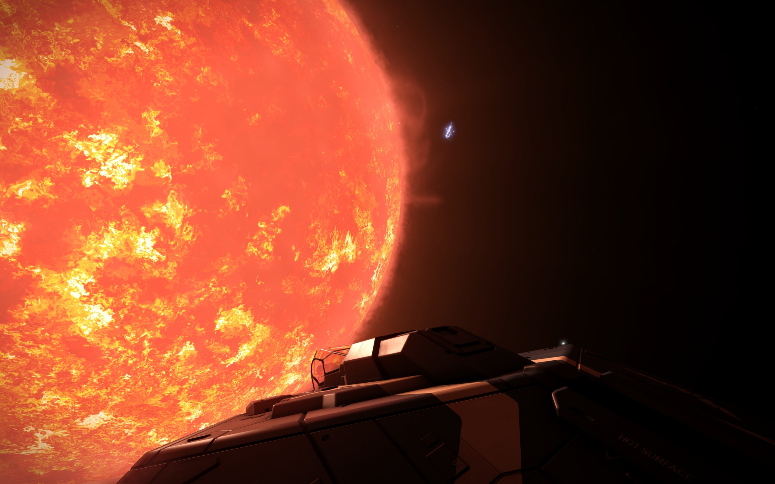 Die zweite Begebung war an einem Aussenposten. Ich habe den Hangar verlassen und bin gestartet, als ich auf dem Radar einen Commander entdecke. Dieser war in einer Type-6 unterwegs und hatte wohl kürzlich eine Begebnung, er flog mit 11% Hülle. Ich habe mal kurz gegrüsst "Greetings Commander! Been a tough ride?", das muss ihn aber arg erschreckt haben. Noch vor der Landung verschwand er ohne Sprung vom Radar, der Gute muss sich ausgeloggt haben.