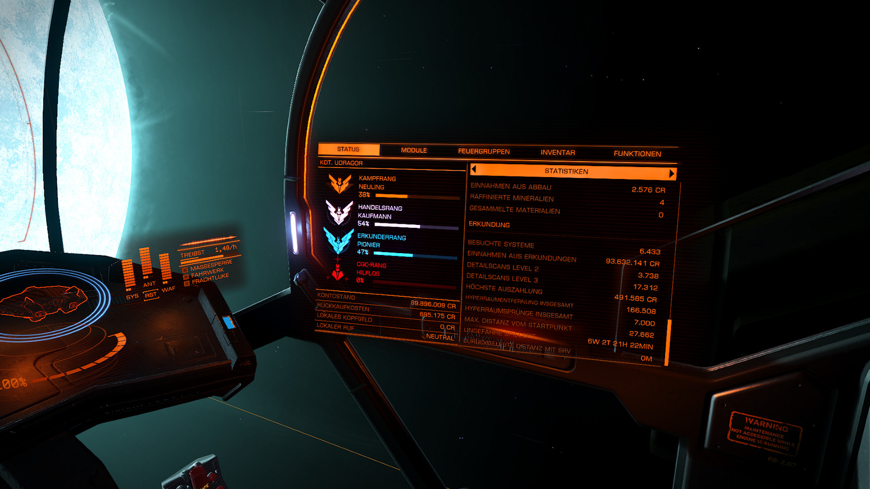 - Bei Attentatsmissionen muss man sich jetzt häufig vorher die Informationen über den Zielort erst noch aus einer Basis per SRV holen. Das hat zumindest theoretisch echt Style. In der Praxis ist es aber leider oft ein Quell ewigen Ärgernisses, weil der SRV sich gefühlt mit jedem Update schwerer steuern läßt. Eine Seifenkiste hat auf einem zugefrorenen See bedeutend mehr Haftung als ein SRV bei Low-Grav, die Lenkung ist zudem echt scheisse