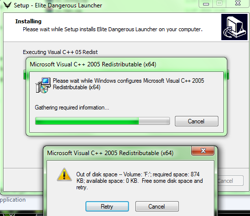 Visual C++ ist eine Programmbibliothek, welche eigentlich immer auf der Betriebssystem Partition C: installiert wird. Wenn er versucht Laufwerk F: stattdessen zu verwenden dann stimmt etwas mit Deinem System ganz und gar nicht. Manchmal stimmt lediglich der Verweis auf das temporäre Verzeichnis nicht, in welches die Daten kurzfristig extrahiert werden um sie dann zu installieren, dann kann man es relaiv leicht fixen, in dem man den Eintrag korrigiert. Aber ich finde es extrem seltsam, das er überhaupt eine Platte versucht anzusprechen die gar nicht angeschlossen ist.