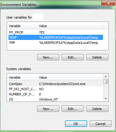 Schau mal was unter Systemsteuerung -> System -> Erweiterte Systemeinstellungen -> Umgebungsvariablen für die Variable TEMP steht.
