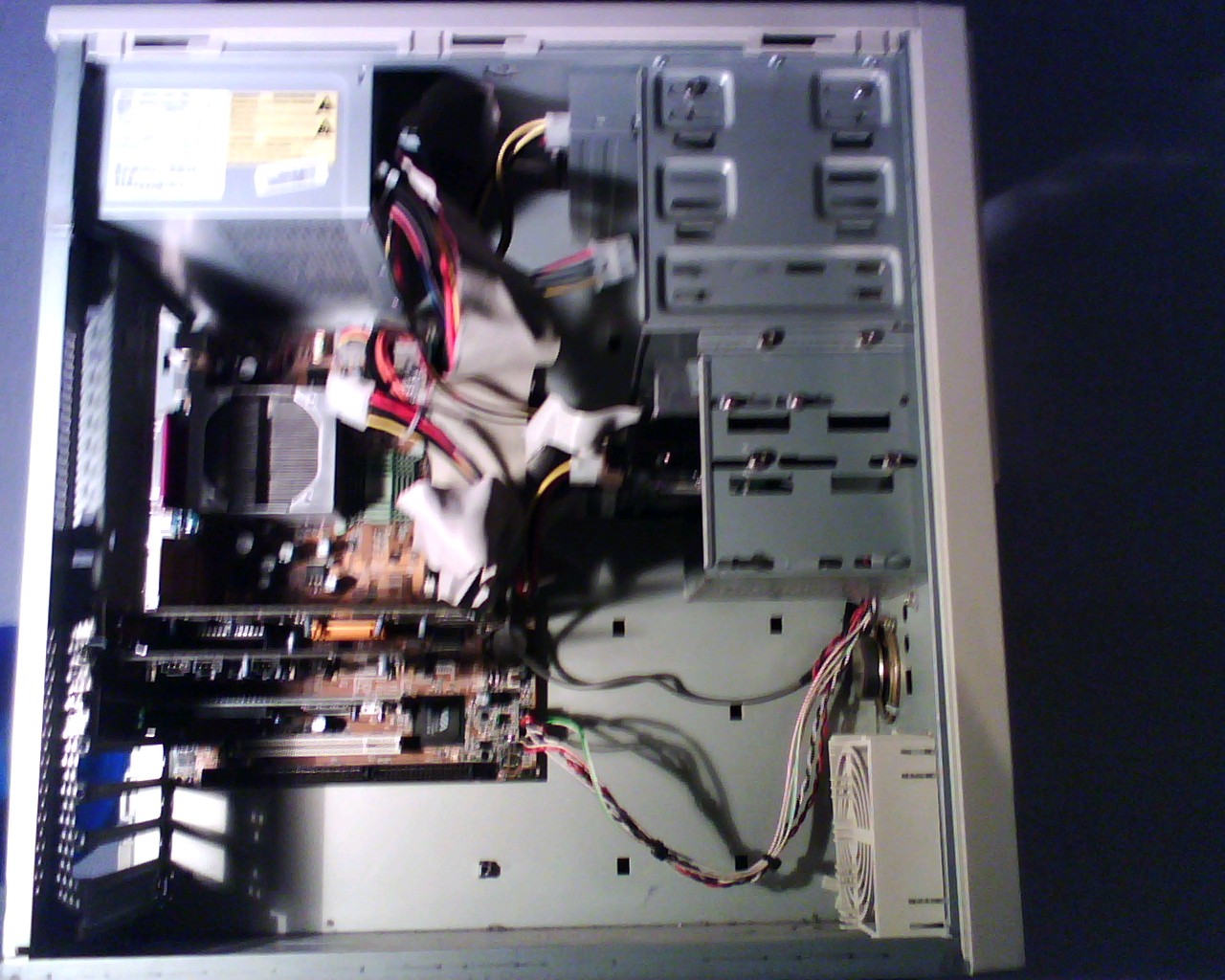 - Gehäuse: Cpu: 1x 120er Scythe S-Flex (Scythe Infinity) auf 5V. // oben/hinten: 1x120er Noctua NF-S12 Lüfter im Dach. Anschaltbar auf 5V (bis 12V). 1200 rounds ab Werk bei 12V // Passivnetzteil: 1x120er zuschaltbar auf "low" und 5V. Es ist ein Standardgehäuselüfter des Antec auf "low"; angeschlossen per Kabelklemme. Nur gedacht für den Hochsommer.(Bild 1)