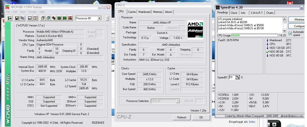 Mein 3000+ @ 2420 MHz hat im Moment unter Last