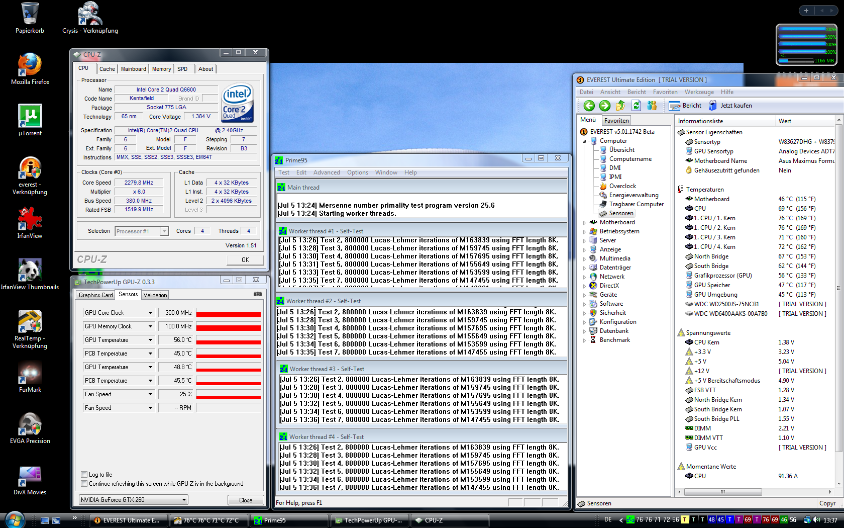 Unter last komm Ich auf 46-52° je raum Temp (lebe auf dem Dach reinste sauna etwa 32-37° hier) GPU last 72° Crysys.